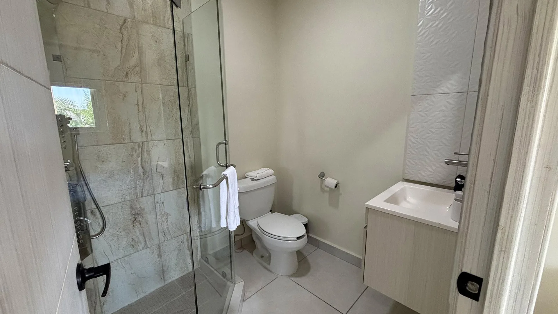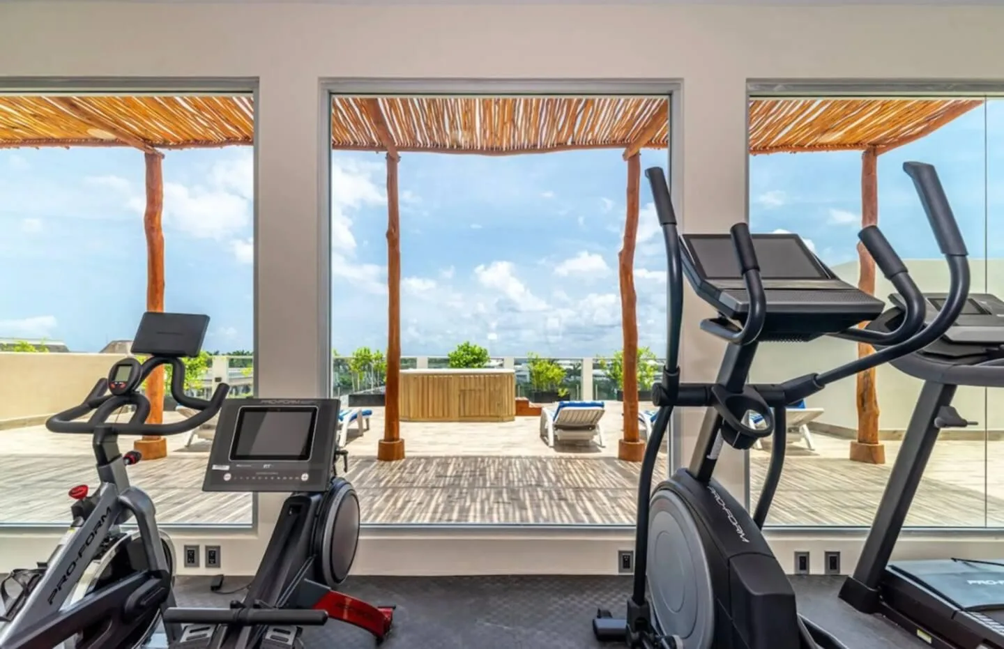 The apartment is fully furnished and features a lock-off concept that allows the two suites to be rented separately. It boasts a modern design with abundant natural light through large windows. The unit is minutes from Xcalacoco beach and Quinta Avenida.
