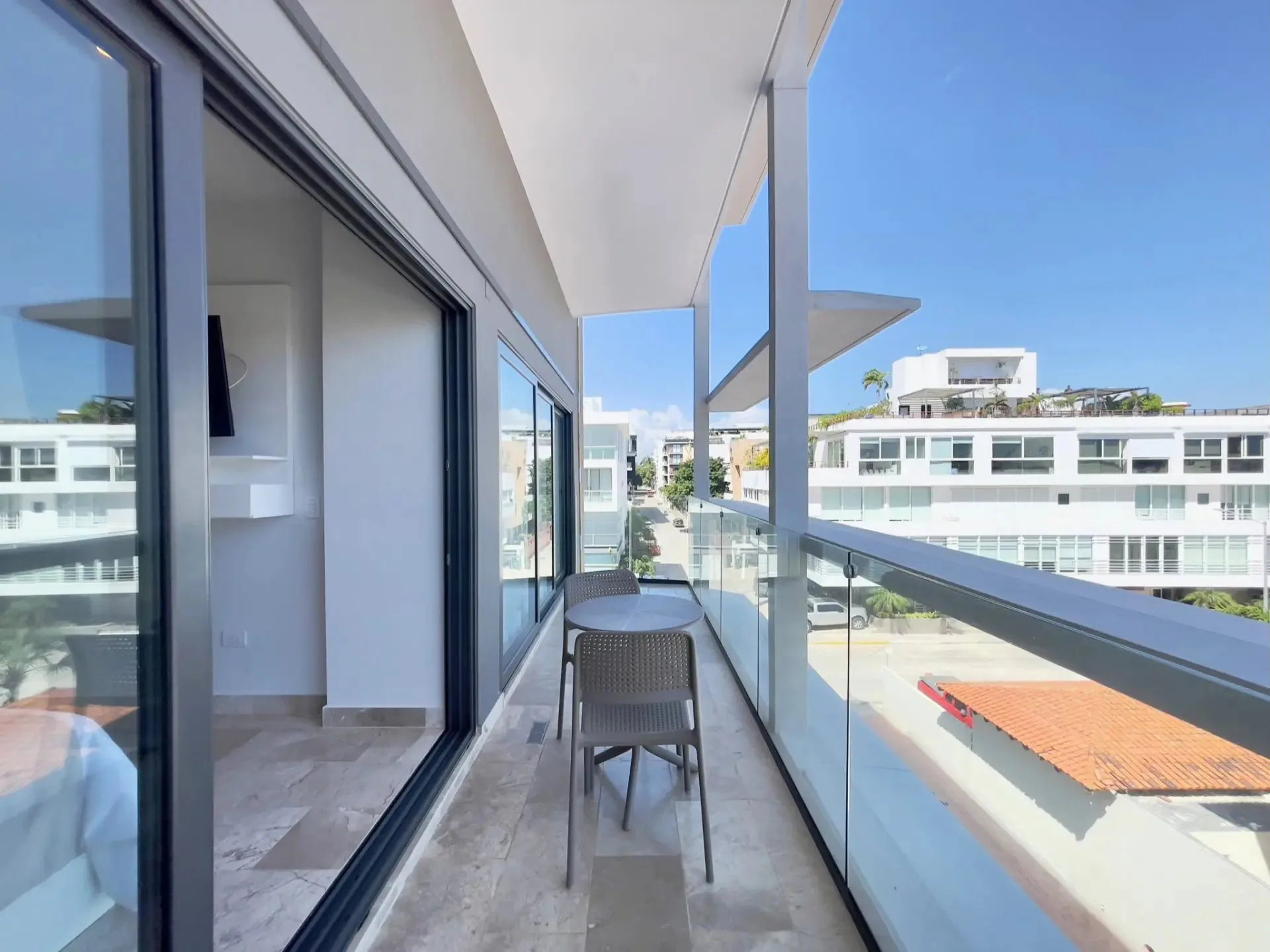 This perfectly arranged unit showcases high-end finishes and features an impressive rooftop with ocean views. It is fully furnished and equipped. A spacious balcony provides stunning views of the sunrise over Playa del Carmen.