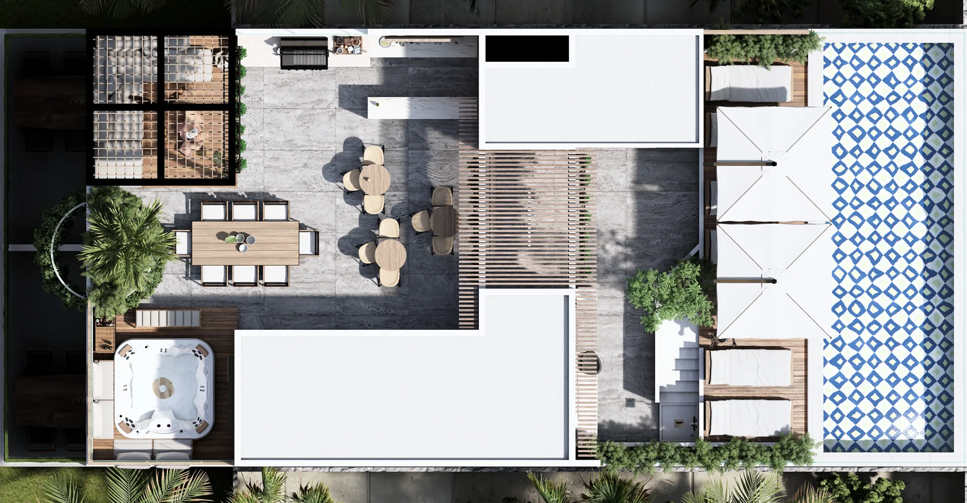 The property is situated in the central area of Playa del Carmen, providing proximity to restaurants, boutiques, bars, and cafes within a multicultural community.