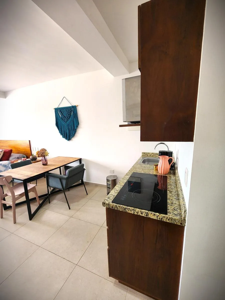 This functional studio apartment encompasses 56 square meters and is located in the Colibrí Suites Condo building. The unit is strategically situated just one block from Avenida Constituyentes.