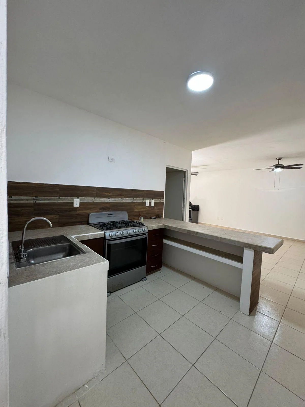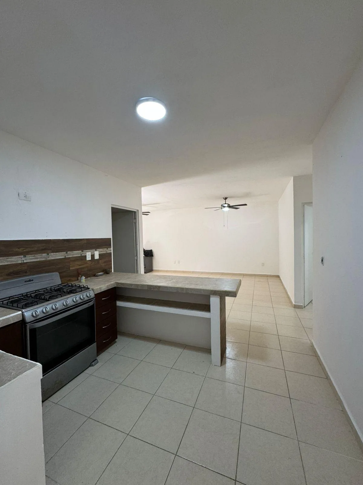 The property is on the ground floor and ready for occupancy. It offers bright spaces with air conditioning in the bedrooms and an open kitchen. The living and dining room are spacious and equipped with fans. The apartment has open closets in the bedrooms and an integrated laundry area in the kitchen.