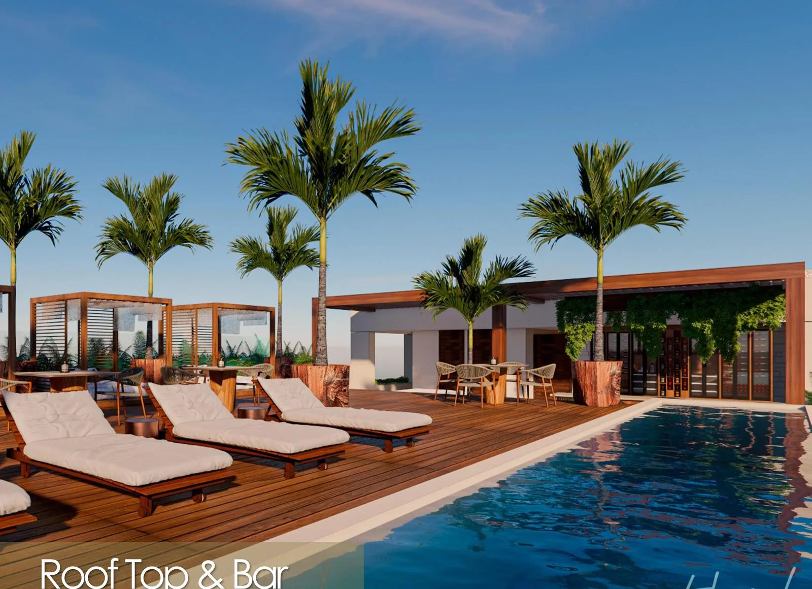 The building features a lobby with 24/7 security. Residents have condominium beach access and access to a condominium app. Amenities include a business center, a vehicle charging station, a convenience store, and covered parking. There are multiple bars: a restaurant bar, pool bar, sports bar, and rooftop bar. Additional facilities include a professional gym, a rooftop with a pool and sea view, an entertainment area, and an artificial cenote. Outdoor amenities comprise a main pool, a children's pool, a swimming lane, jacuzzis, a hammock area, a grill area, and a fire pit.