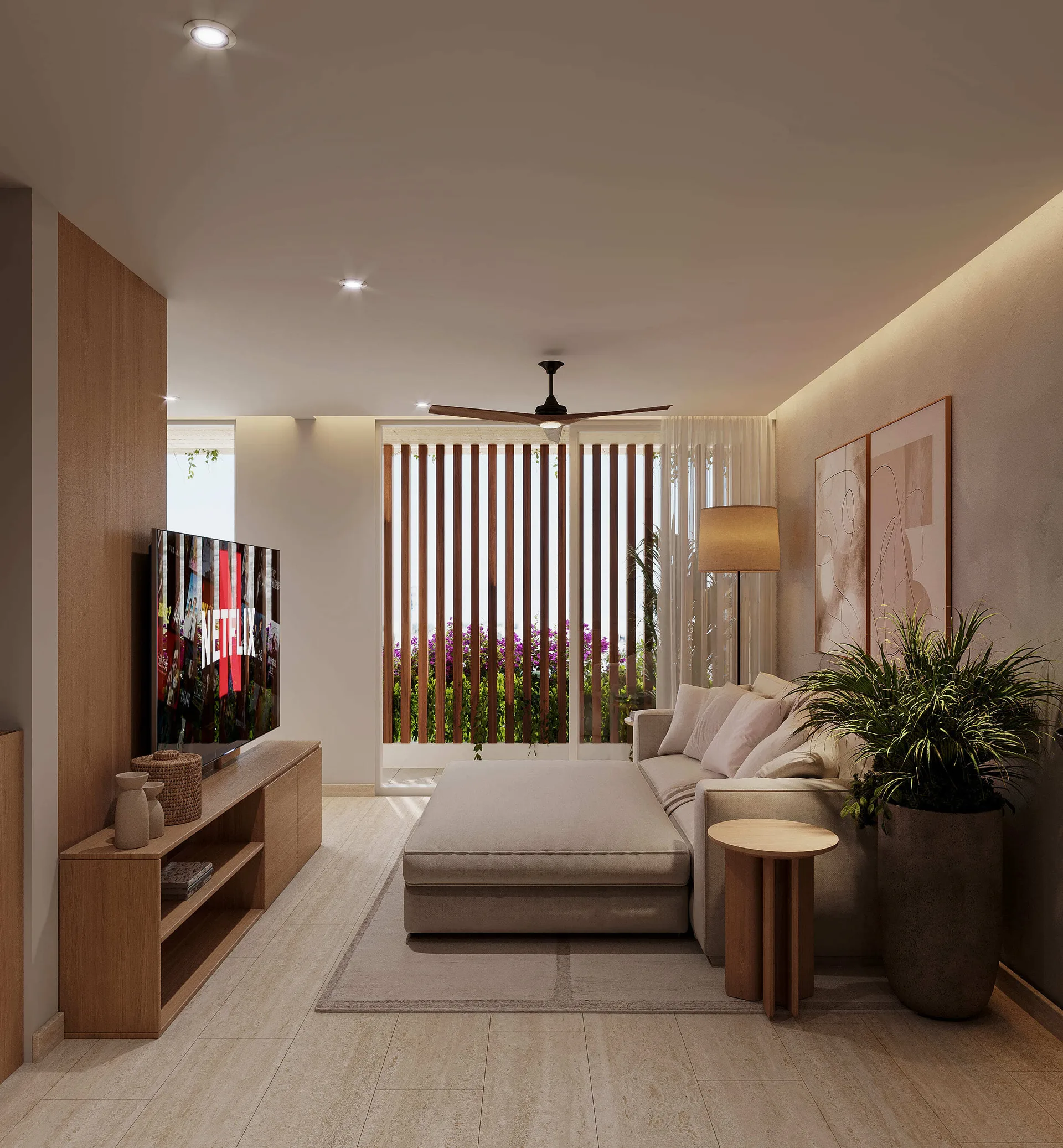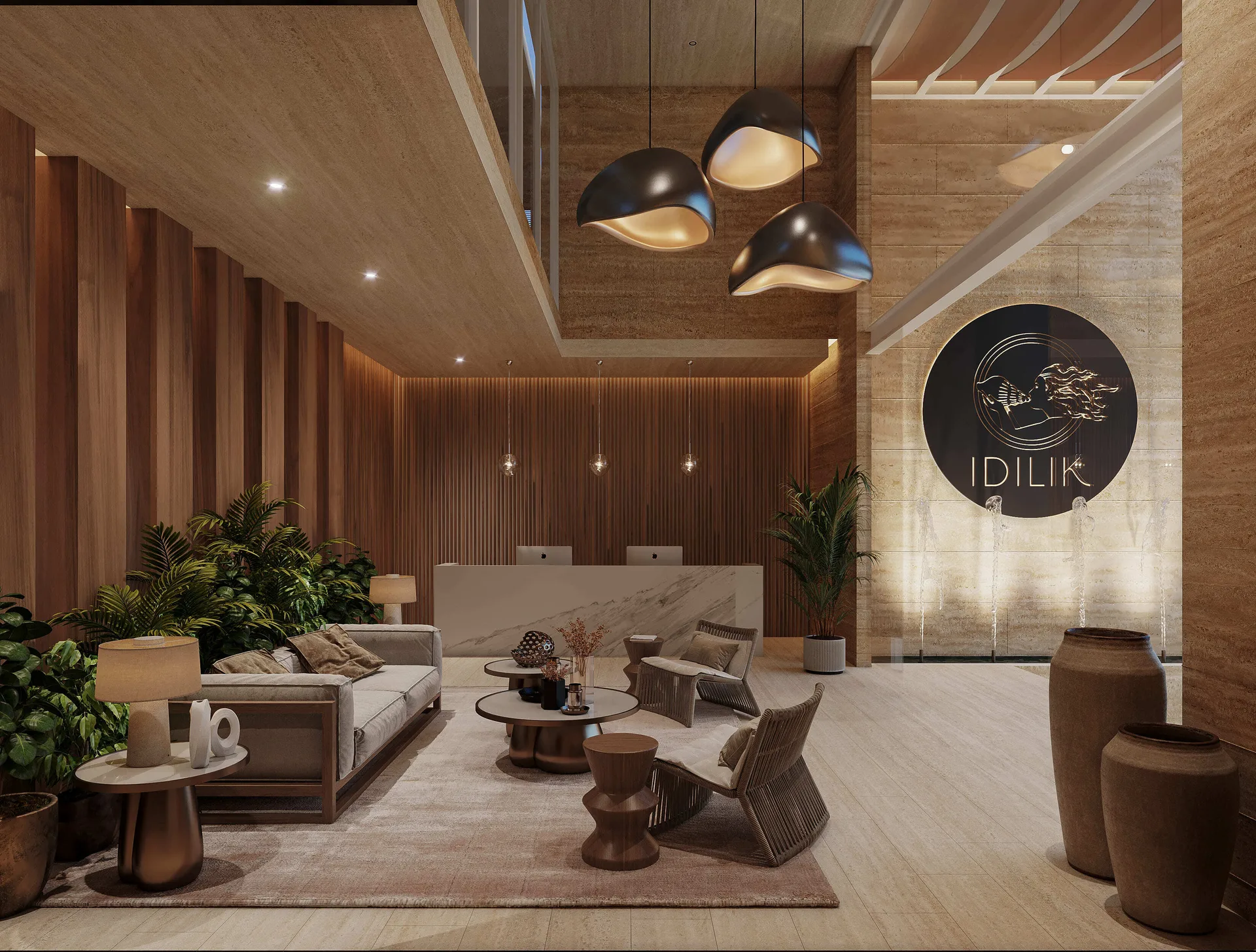 The development features high-end units with one or two bedrooms. Many units offer views of the sea or the nearby city park.
