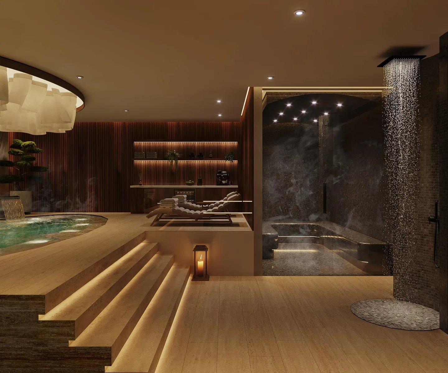 The property features exclusive amenities that function as an extension of the home. These include a rooftop area with a swimming pool, bar, jacuzzi, fireplace, and lounge space. The building also contains a spa, a concierge service, and shared coworking facilities.