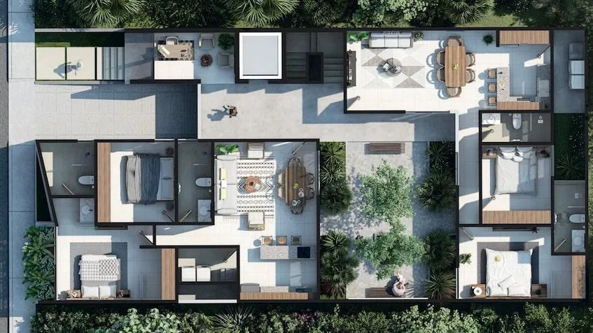 This boutique development offers only 10 apartments, featuring two and three-bedroom layouts. The property is situated just minutes from the beach and the famous Fifth Avenue in Playa del Carmen.