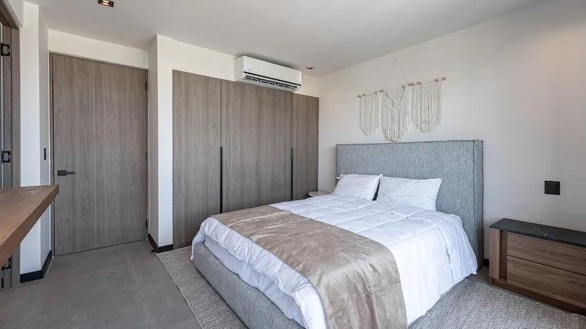 The location is strategic, close to the beach, Fifth Avenue, and major commercial zones, offering excellent connectivity. Points of interest nearby include the beach, a two-minute proximity, and Fifth Avenue, approximately three minutes away. The Cancun International Airport is about 45 minutes away, the Cozumel ferry is five minutes, the Quinta Alegría shopping mall is four minutes, and the ADO bus terminal is six minutes.