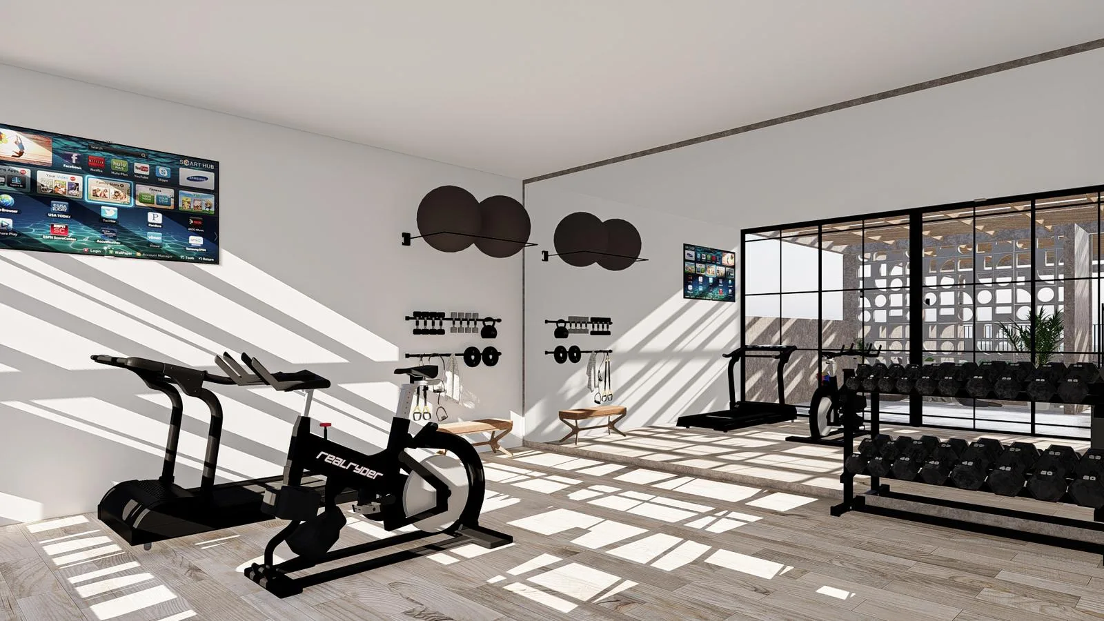 Building amenities feature a rooftop with a pool and sea view, an elevator, a gym, a yoga area, a grill area, a lookout point, and a Jacuzzi.