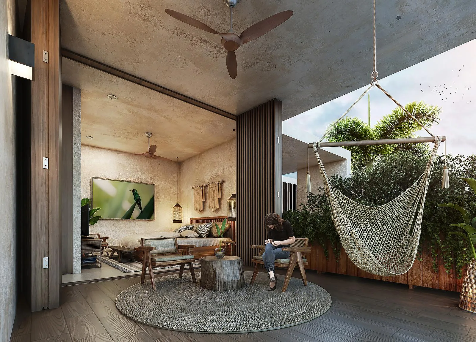 This modern one-bedroom apartment offers a blend of comfort and style in the Riviera Maya.