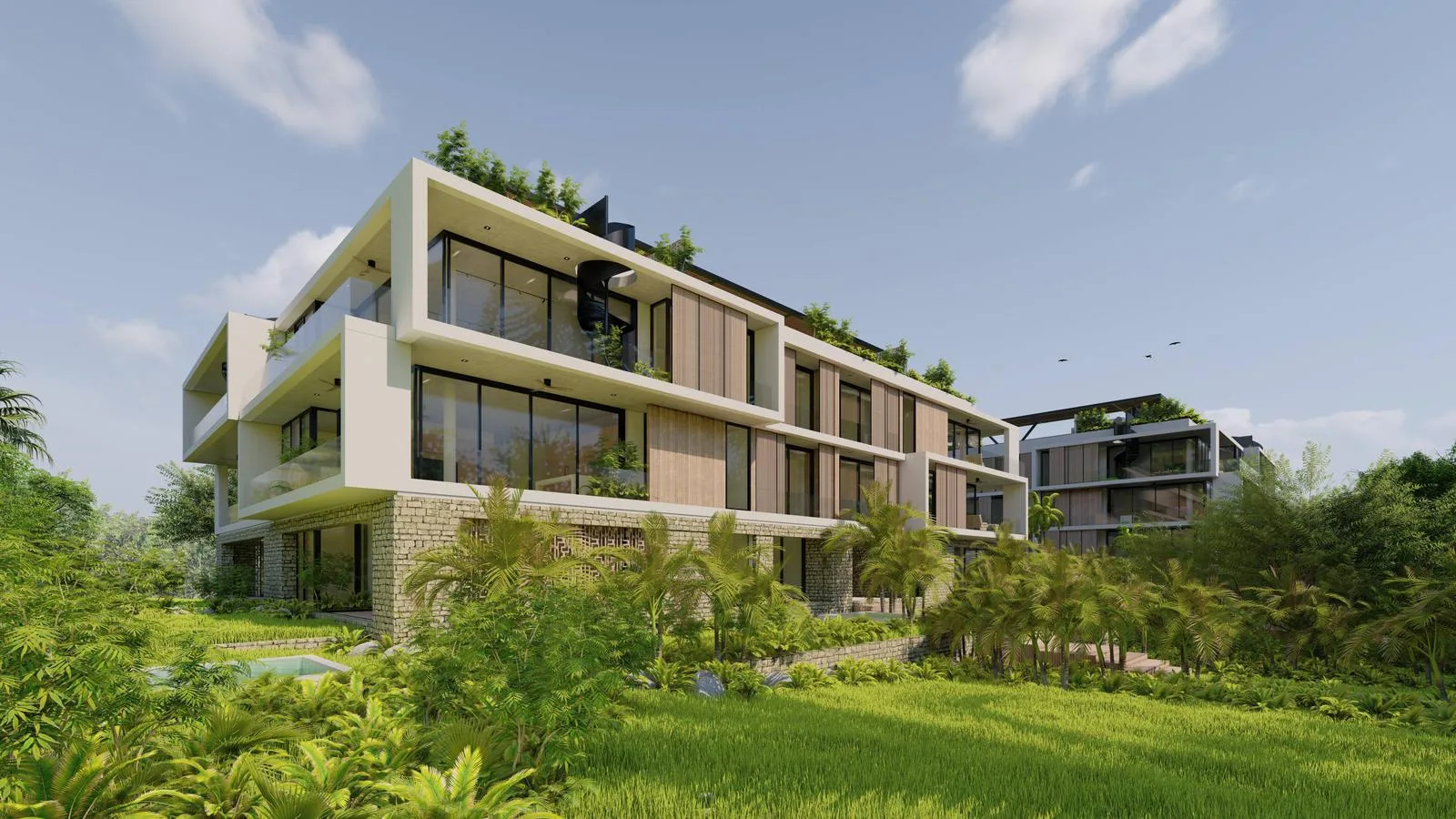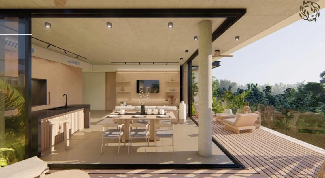 This residential community is situated within seventy thousand square meters of preserved jungle, with over forty thousand square meters dedicated to green areas and amenities. The master plan is characterized by low density, fostering a harmonious environment surrounded by nature.