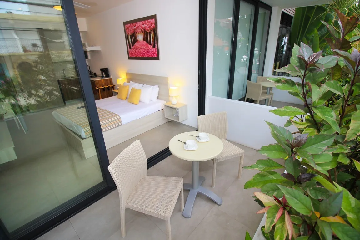 The studio is located on the ground floor and features a very large covered balcony, perfect for relaxing or enjoying the tropical lifestyle. With a total area of 33. 45 square meters, the unit is fully furnished in a tasteful, new-looking decor, equipped, and ready for immediate occupancy or rental.