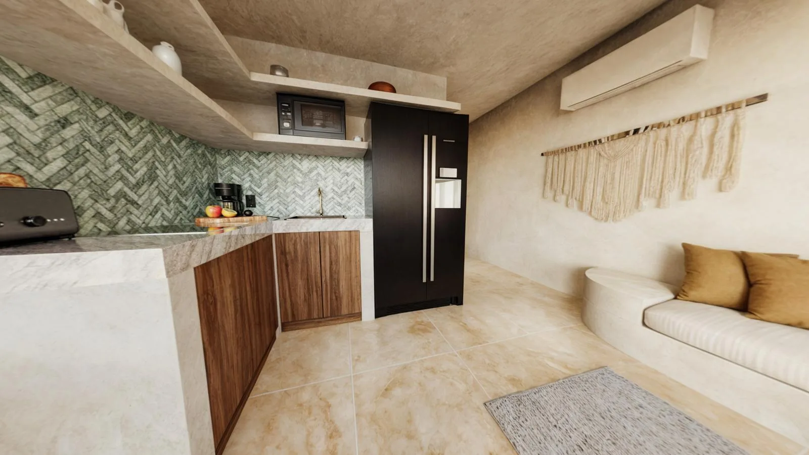 This exclusive project of 64 units is inspired by Mediterranean style, blending rustic textures with modern finishes to create spaces of great character and value. Each residence offers spacious, well-lit, and carefully designed environments.
