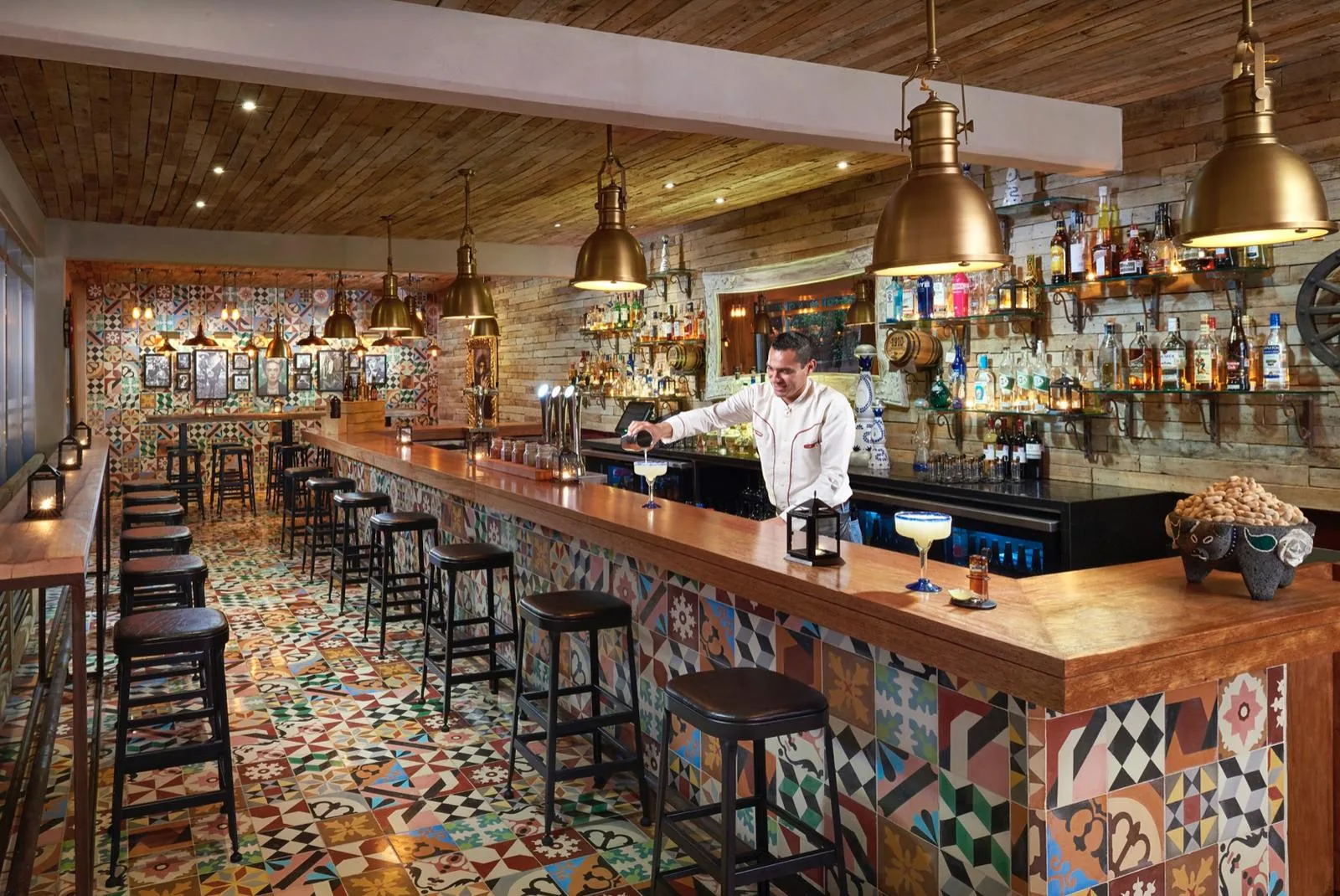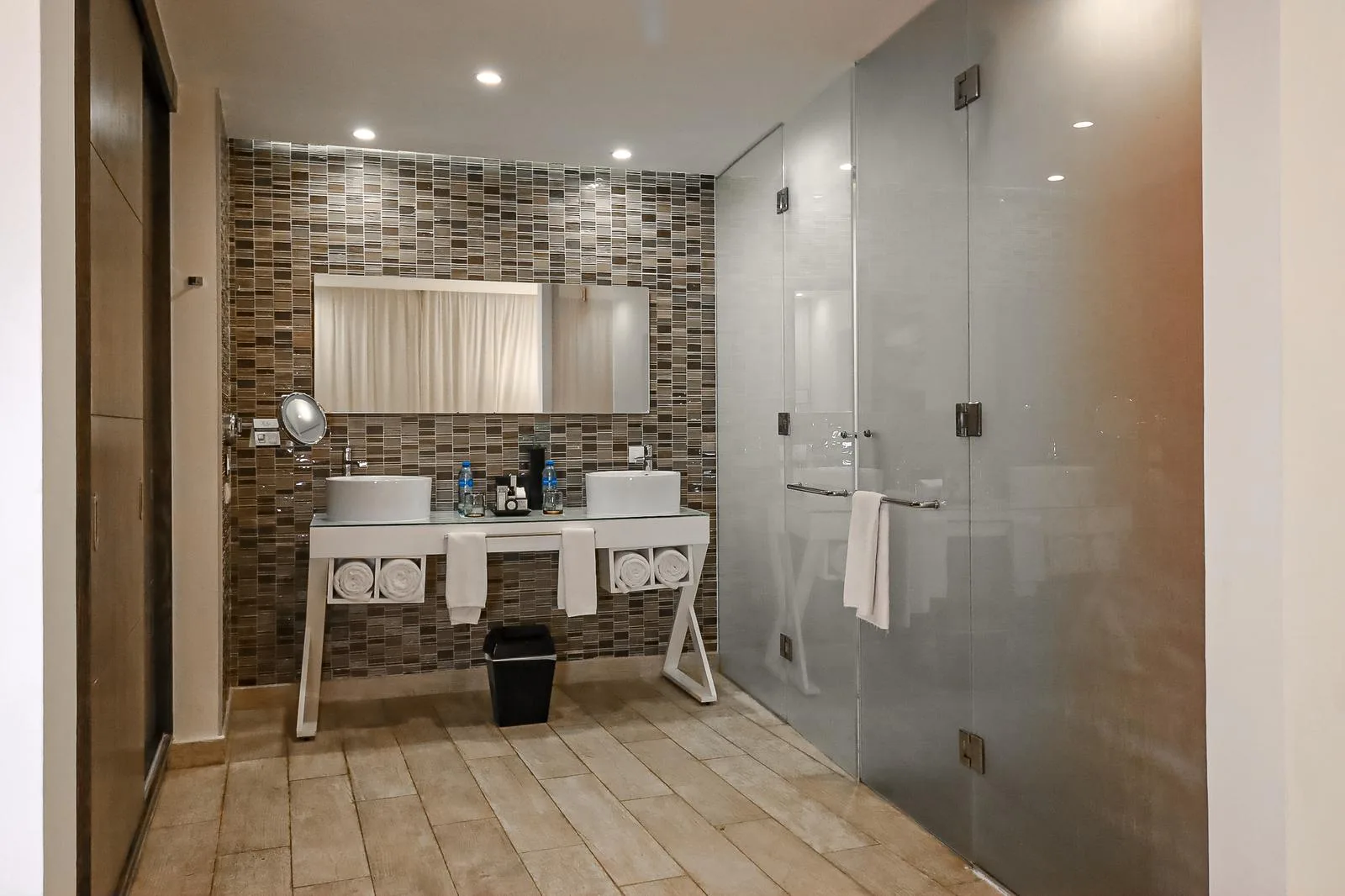 Resort amenities include a private beach club with Caribbean views, seven swimming pools including two infinity pools, fifteen gourmet restaurants, and nine exclusive bars. Additional facilities consist of a full-service spa, a fully equipped gym, tennis and basketball courts, a kids' club, and a dedicated teen game room. The complex also features a Marley Coffee shop and The Fives Plaza with commercial options.