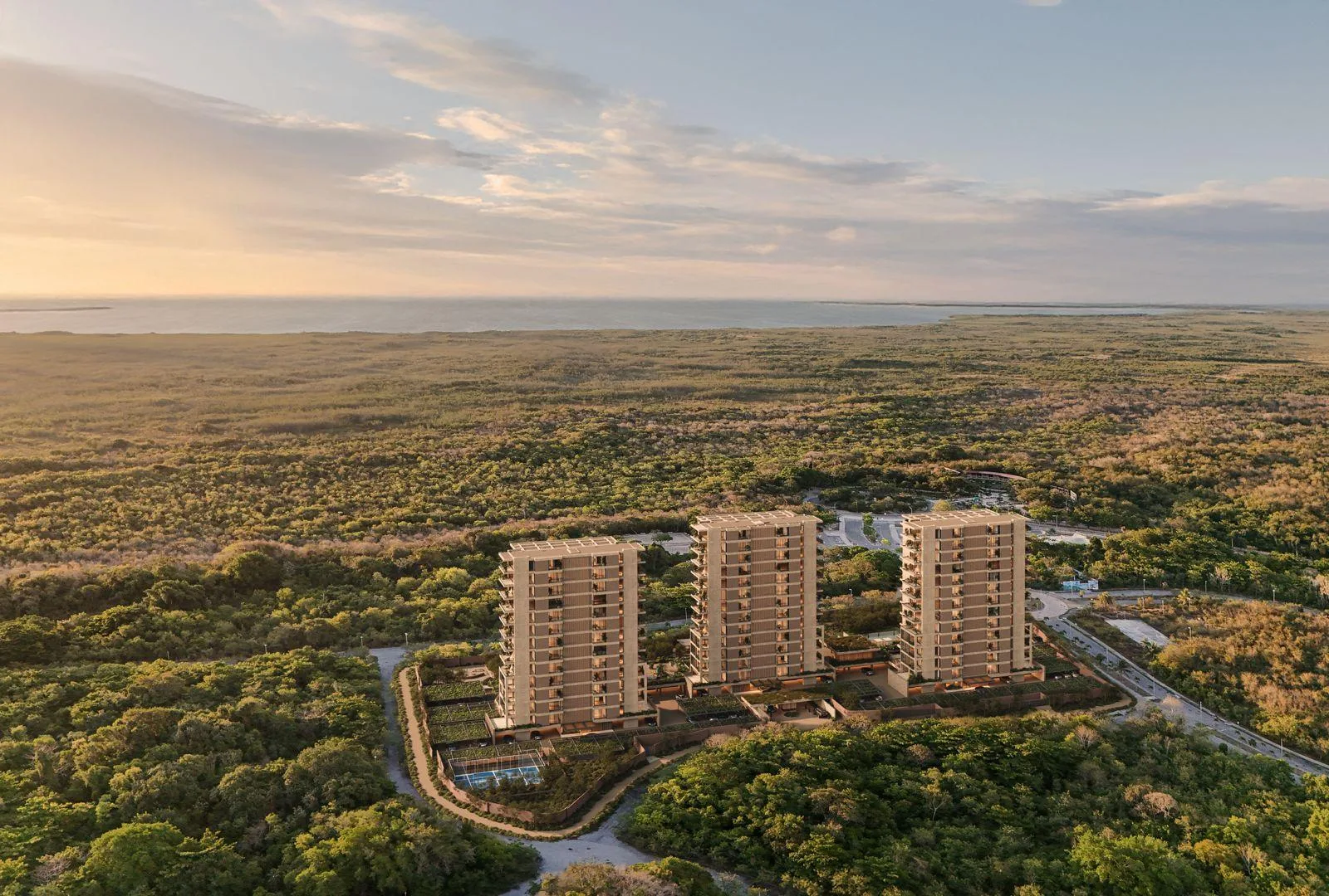 The environment is a tranquil residential zone with proximity to the Laguna Nichupté and easy access to main roads.
