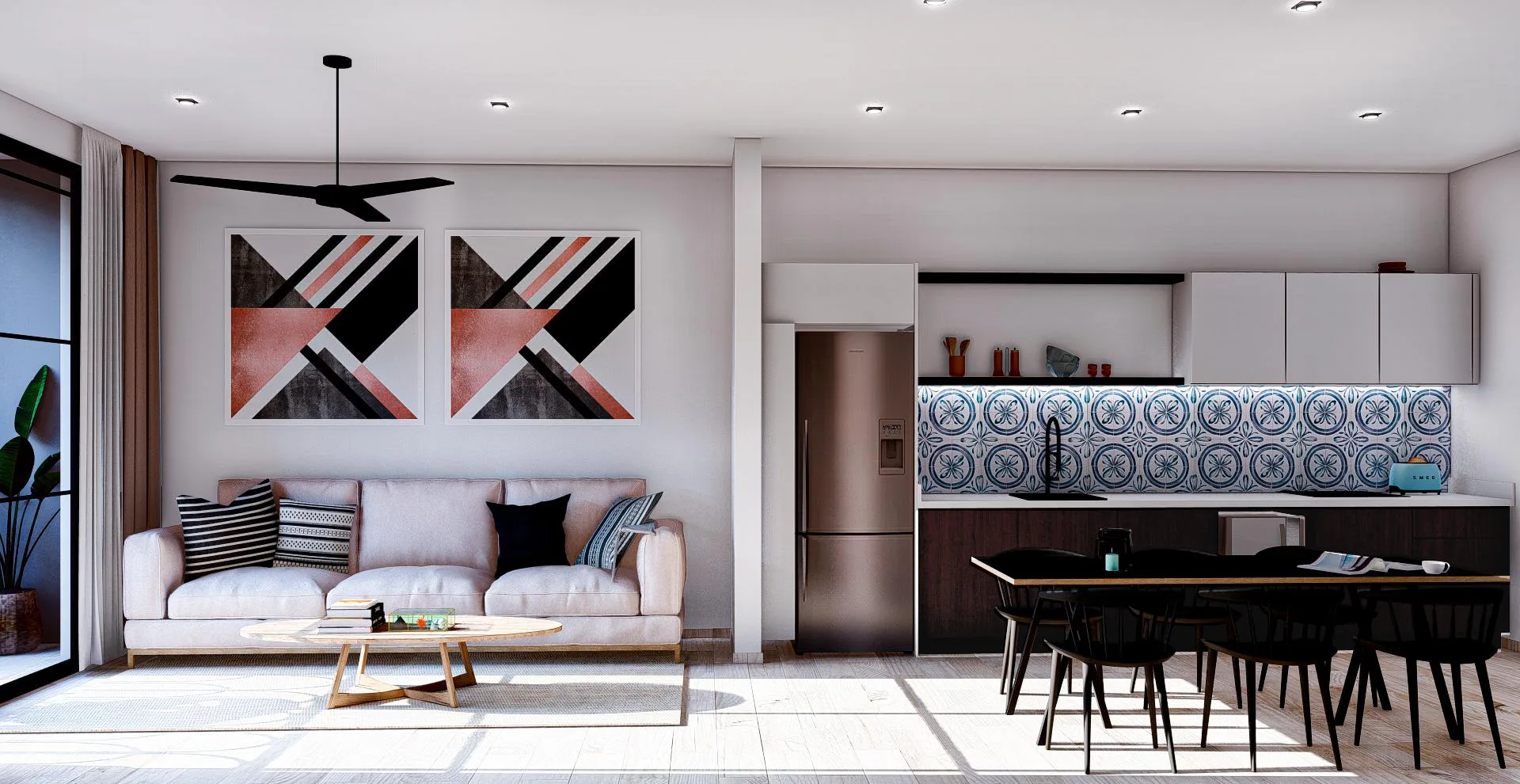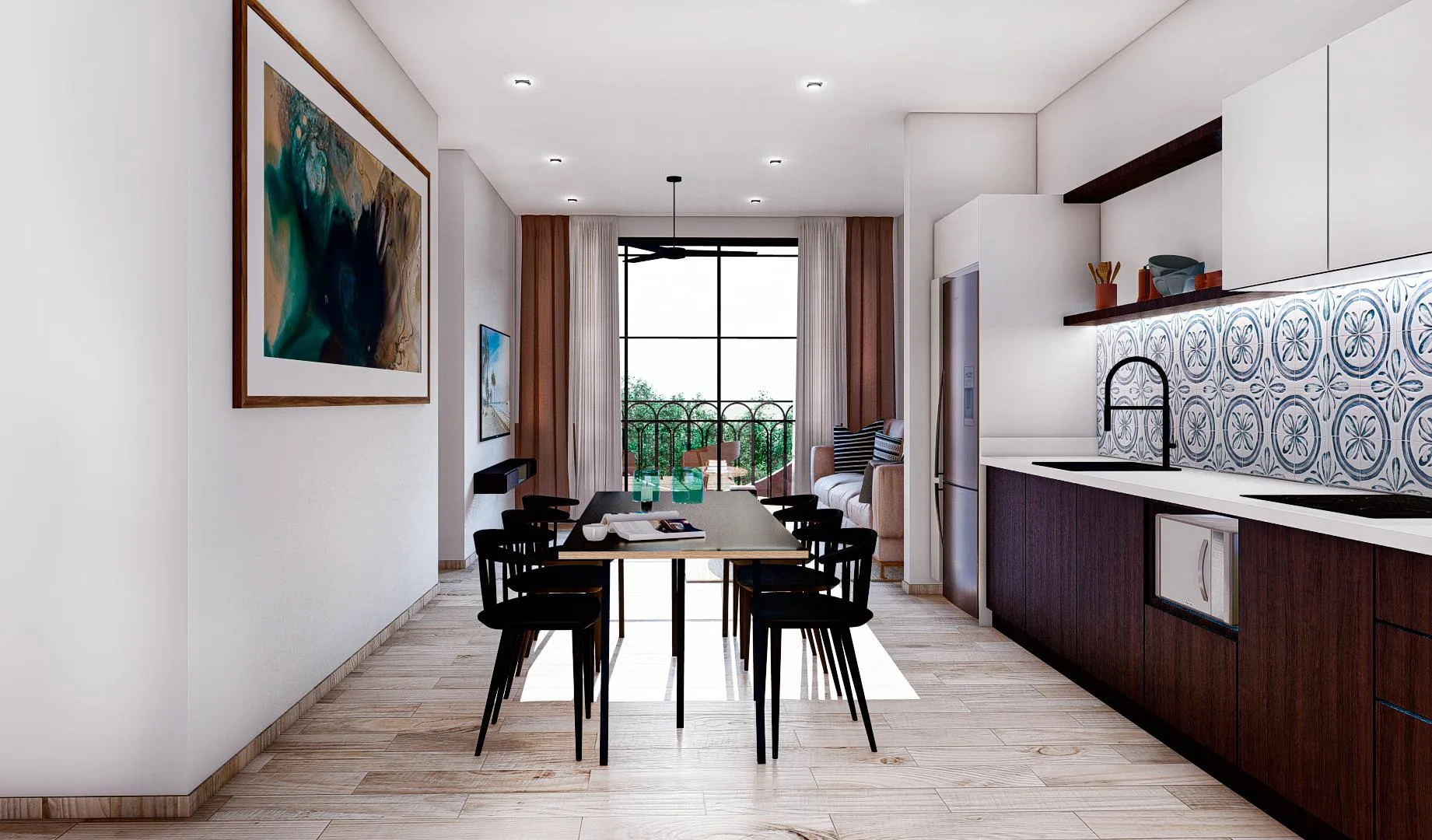 This 62. 19 square meter, one-bedroom apartment offers a cozy and efficient layout designed for privacy and comfort. The intelligent design prioritizes functionality and natural light, creating a bright and open environment. Finishes include wood carpentry and high-quality materials throughout.