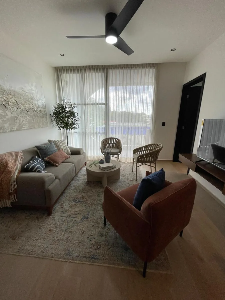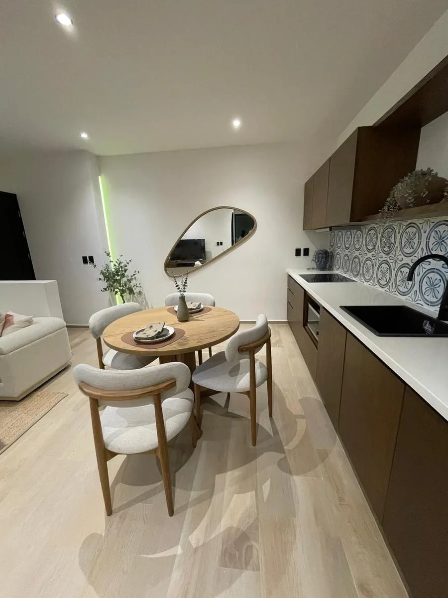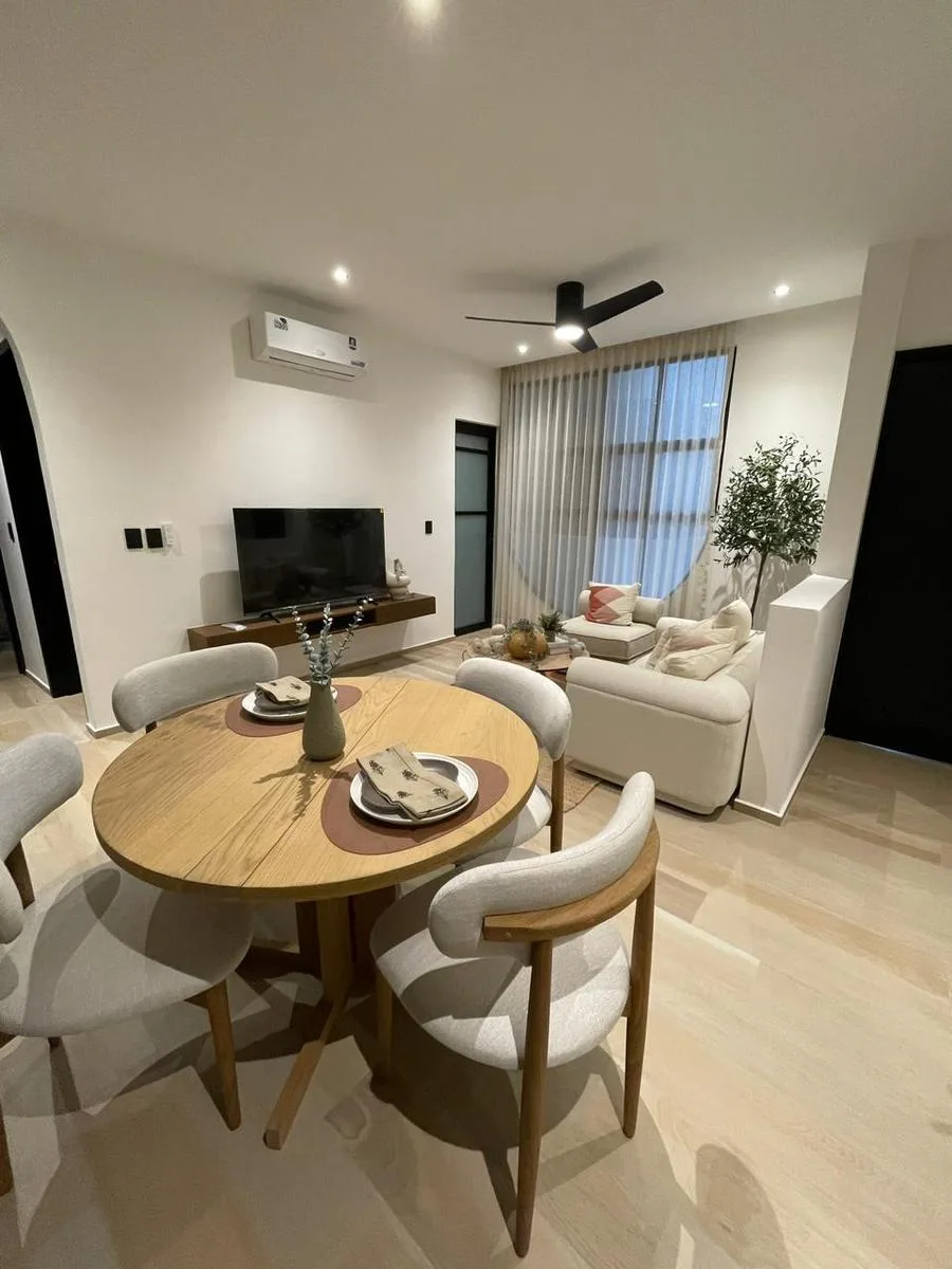 This one-bedroom apartment features a private terrace and encompasses a total area of 62 square meters. It is located in Playa del Carmen.