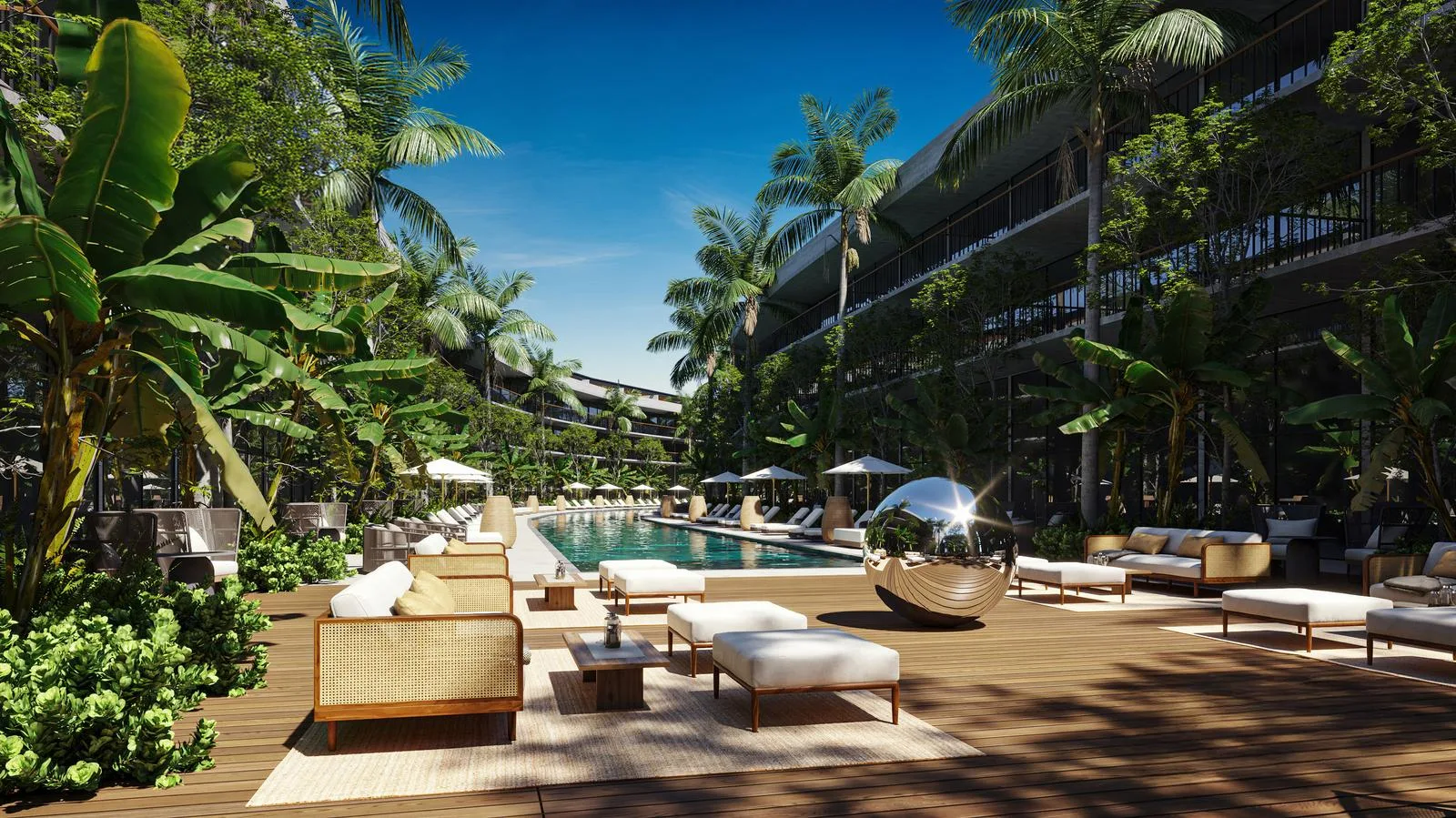 This residential project features extensive recreation and social areas, high-quality facilities, and carefully designed finishes. It is set in a natural environment that blends with the beauty of the Mexican Caribbean.