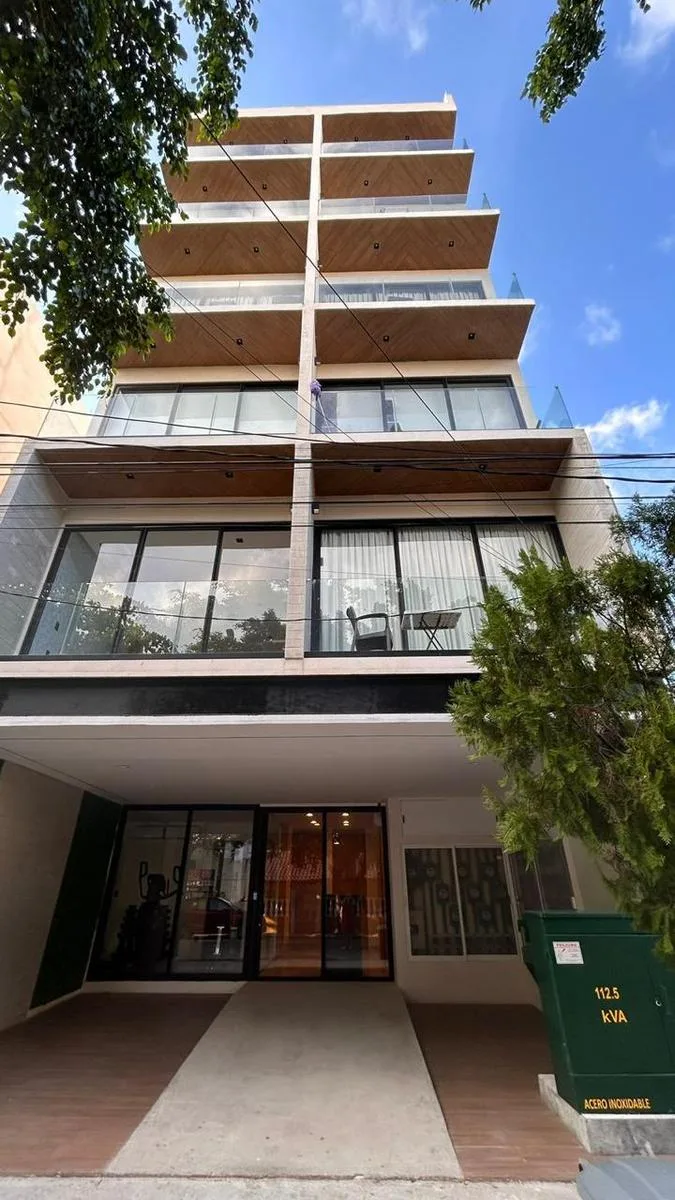 The building features a range of amenities including a concierge and 24/7 security. There is a barbecue area, a wireless audio system with high-volume speakers, an infinity pool, and a gym. The rooftop offers Wi-Fi and a sky bar. The building is equipped with an elevator.