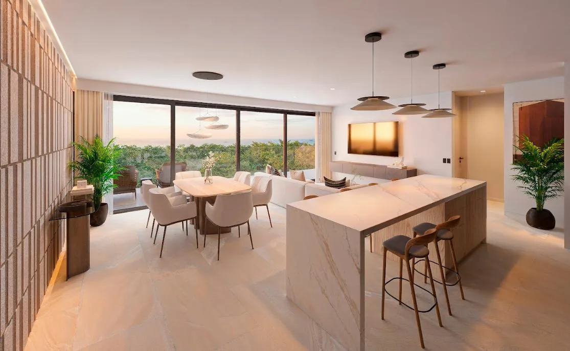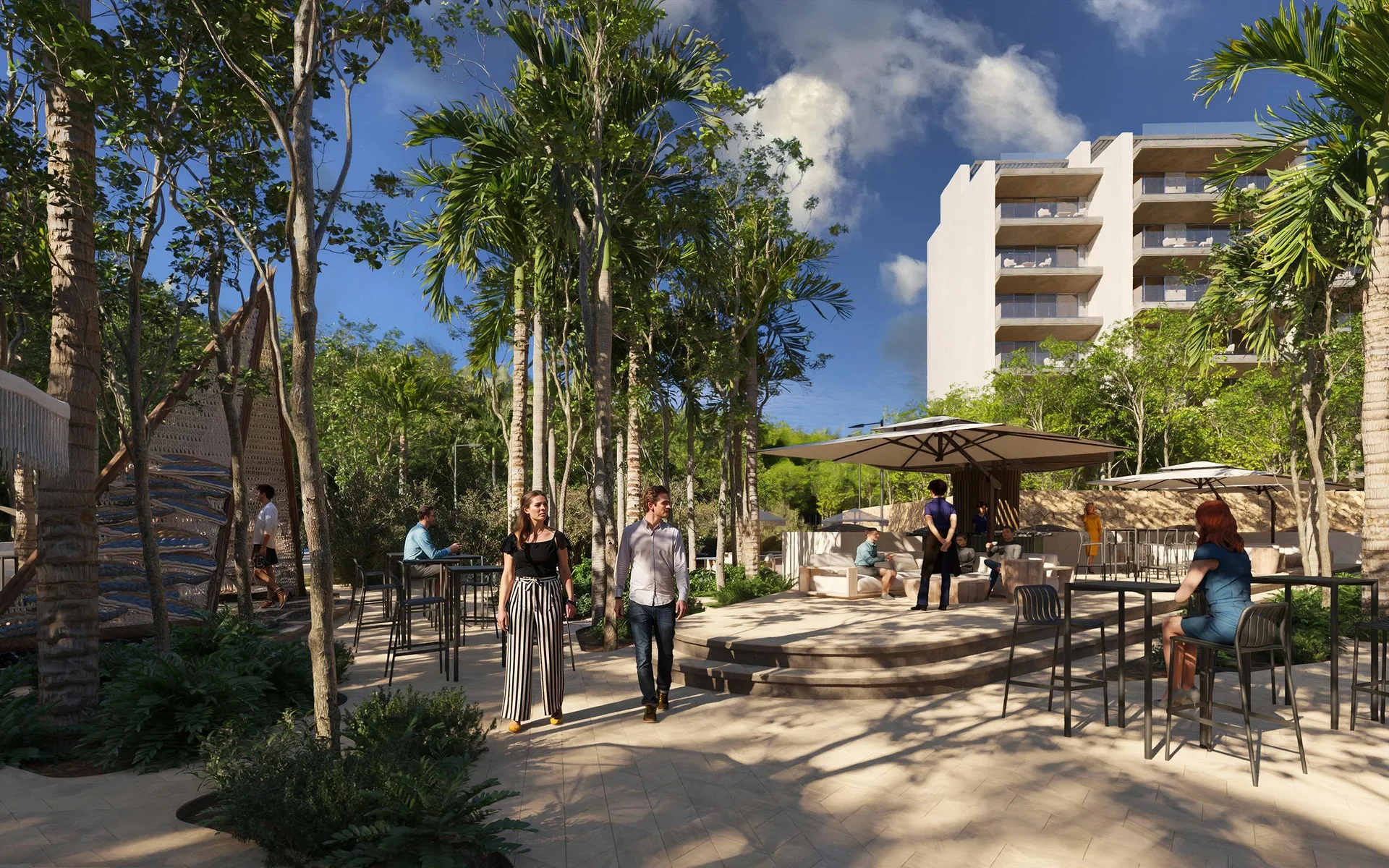 Distrito Xcalococo is a residential community situated in Playa del Carmen's Diamond Zone, just steps from the Caribbean shoreline. This development blends modern design with a coastal lifestyle.