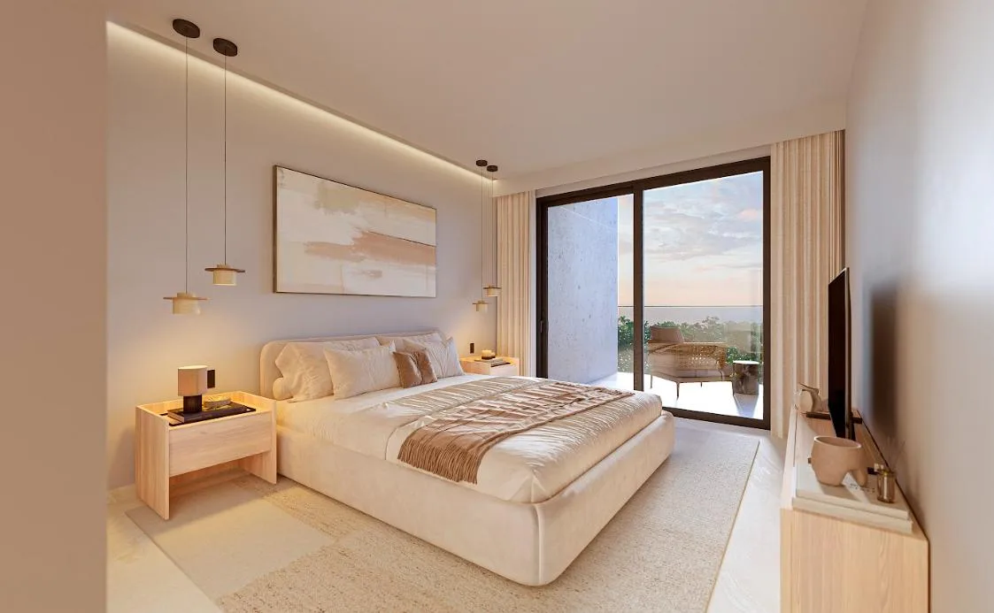 The community provides access to a private beach club. On-site amenities include a resort-style pool, a 25-meter lap pool, an outdoor jacuzzi, a wellness center, and a gym. There are co-working spaces, lush gathering areas, a central plaza with shops, coffee spots, restaurants, a signature bar, and sports areas.