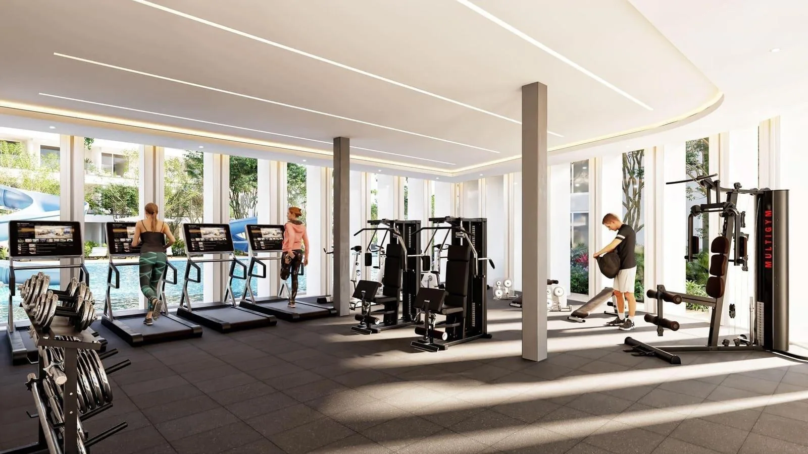 The development features four swimming pools, including a children's pool, sunbathing areas, an outdoor yoga area, a climate-controlled gym, a restaurant and bar terrace, a children's playground, a jogging and hiking trail, and a dedicated pet zone.