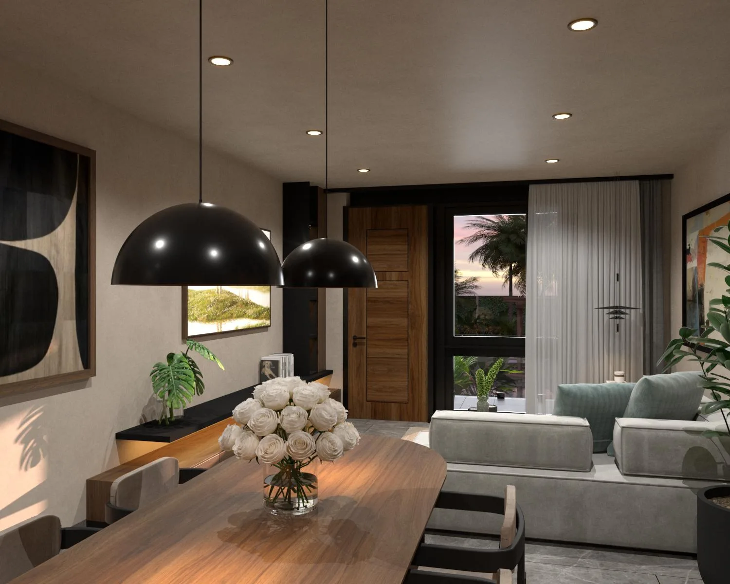 This residential development is located in the Playacar Phase II community in Playa del Carmen. It features contemporary architecture with natural materials and is set within tropical vegetation, near the Caribbean Sea.