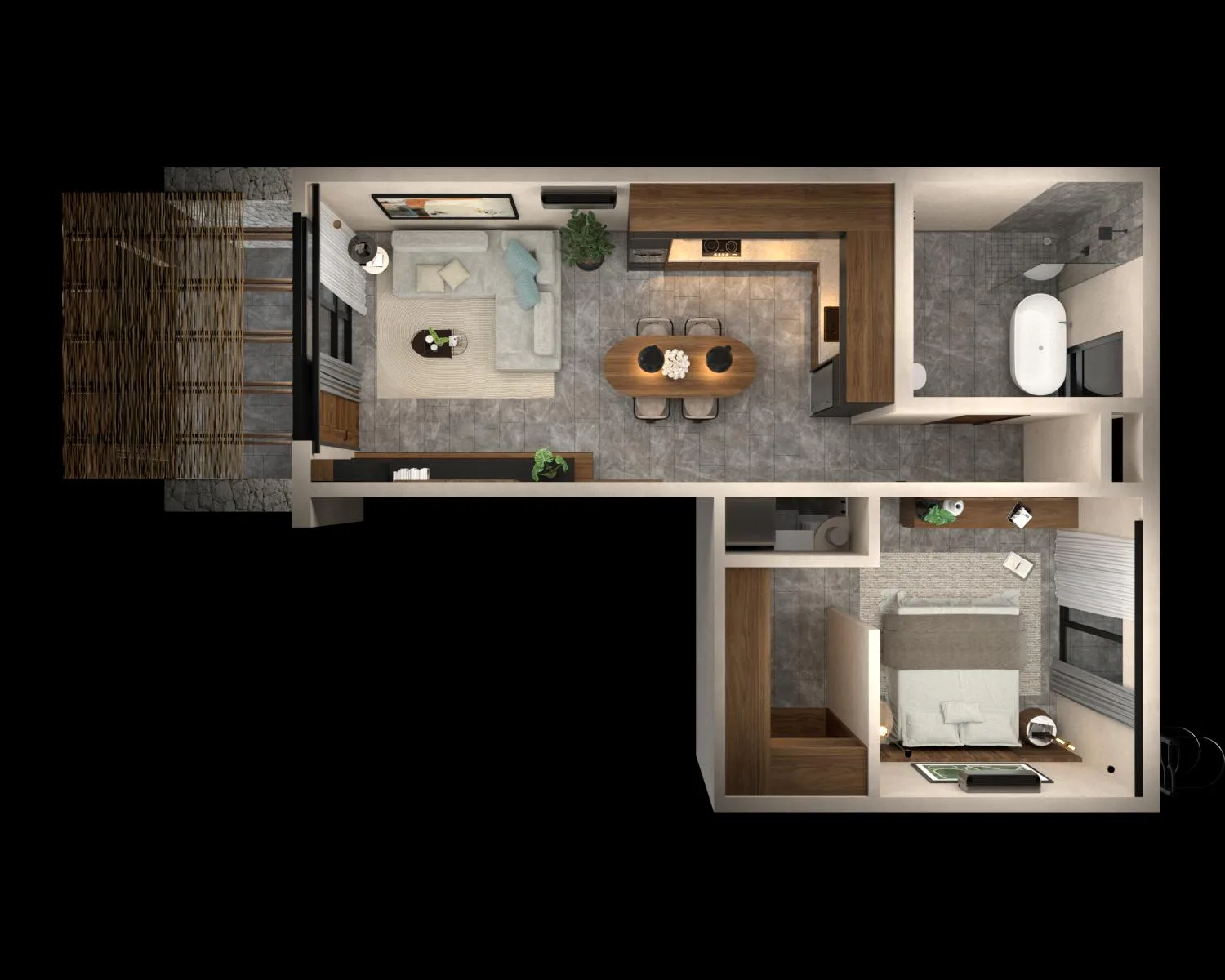 The development includes 45 residences, offering options with 1, 2, 3, and 4 bedrooms. Each residence has quality finishes, spacious layouts, private terraces, and a design that emphasizes natural light and connection with nature.