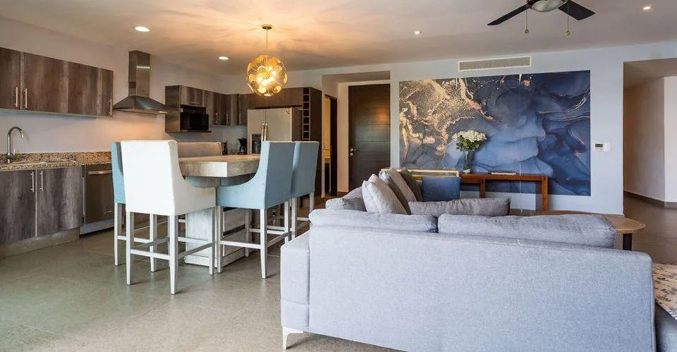 Ownership includes access to an exclusive beach club within Playacar. The condo includes convenient garage parking.