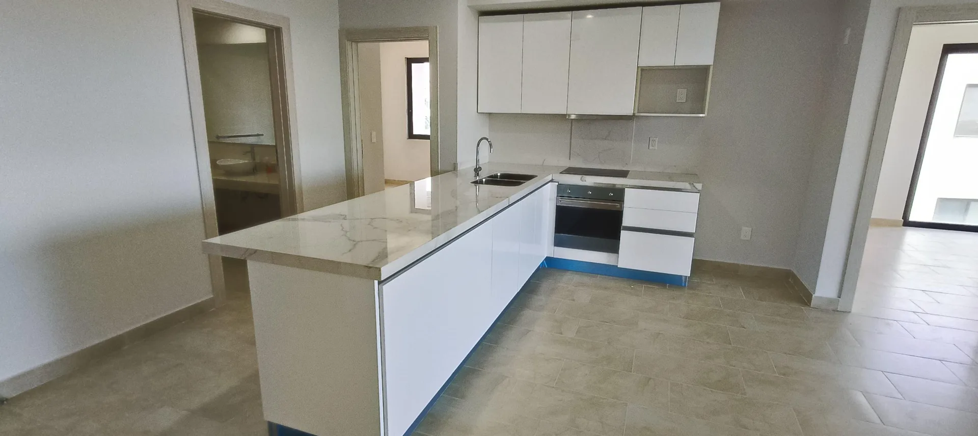 The unit is brand new and has never been occupied. It features a fully equipped kitchen, three full bathrooms, and a terrace with excellent natural light.