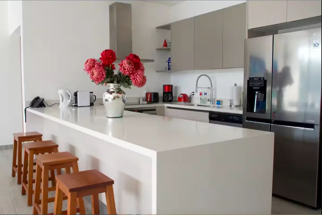 The condo is situated within the Playacar residential community. It is a five-minute walk to the beach and nearby Mayan ruins, and a six-minute walk to Fifth Avenue, known for its boutiques, cafes, and restaurants. The location is also near the Cozumel ferry, snorkeling tours, boating, and jet skiing facilities.