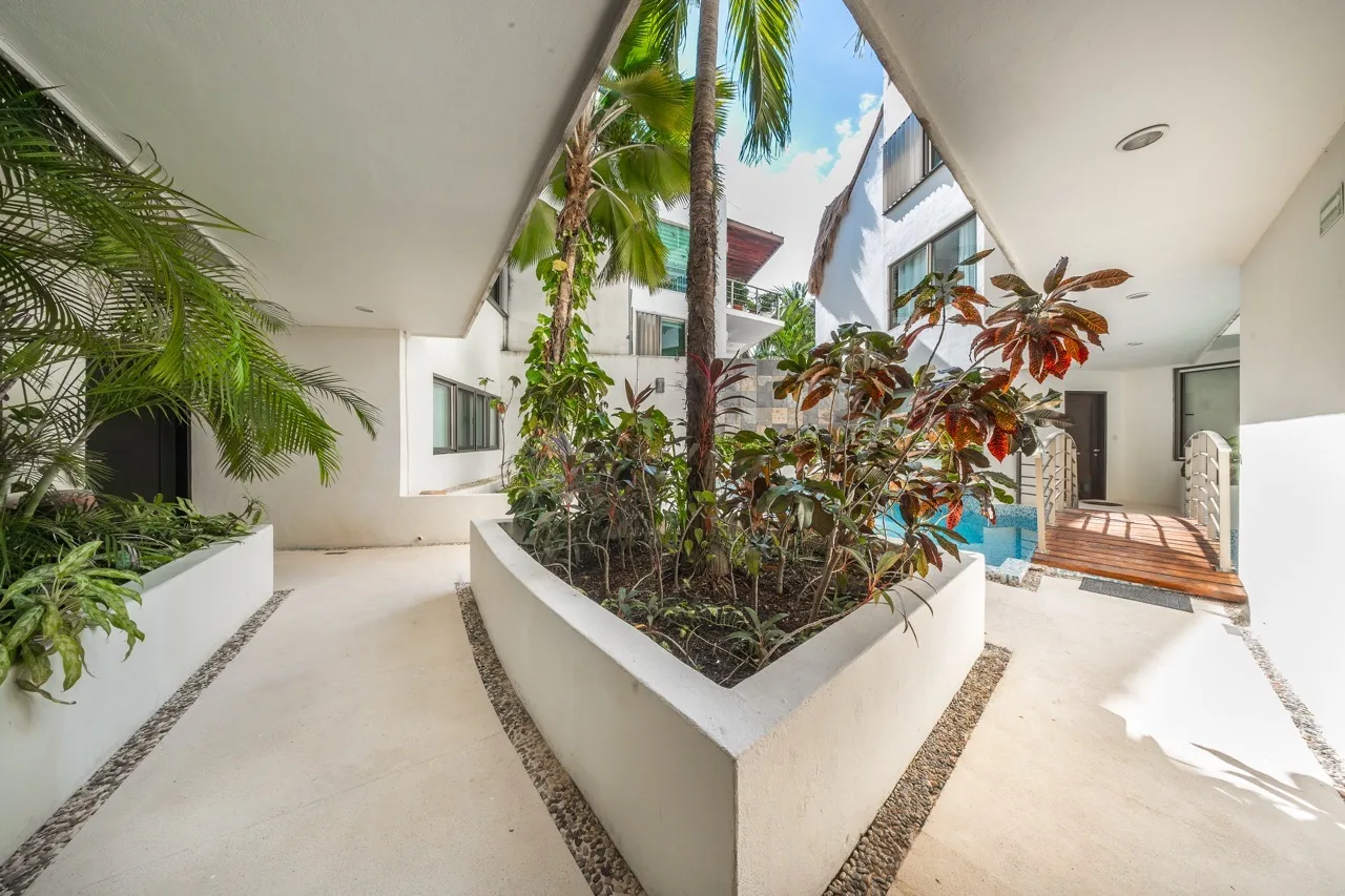 The building includes 24/7 security, underground parking, and a shared swimming pool. The central yet quiet location in Zazil-Ha places it within walking distance to beaches, shopping, restaurants, and local services.