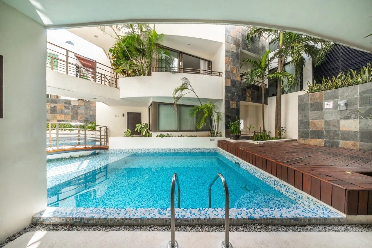 Spacious One-Bedroom Condo with Two Balconies and Pool Views in Playa del Carmen's Zazil-Ha Neighborhood