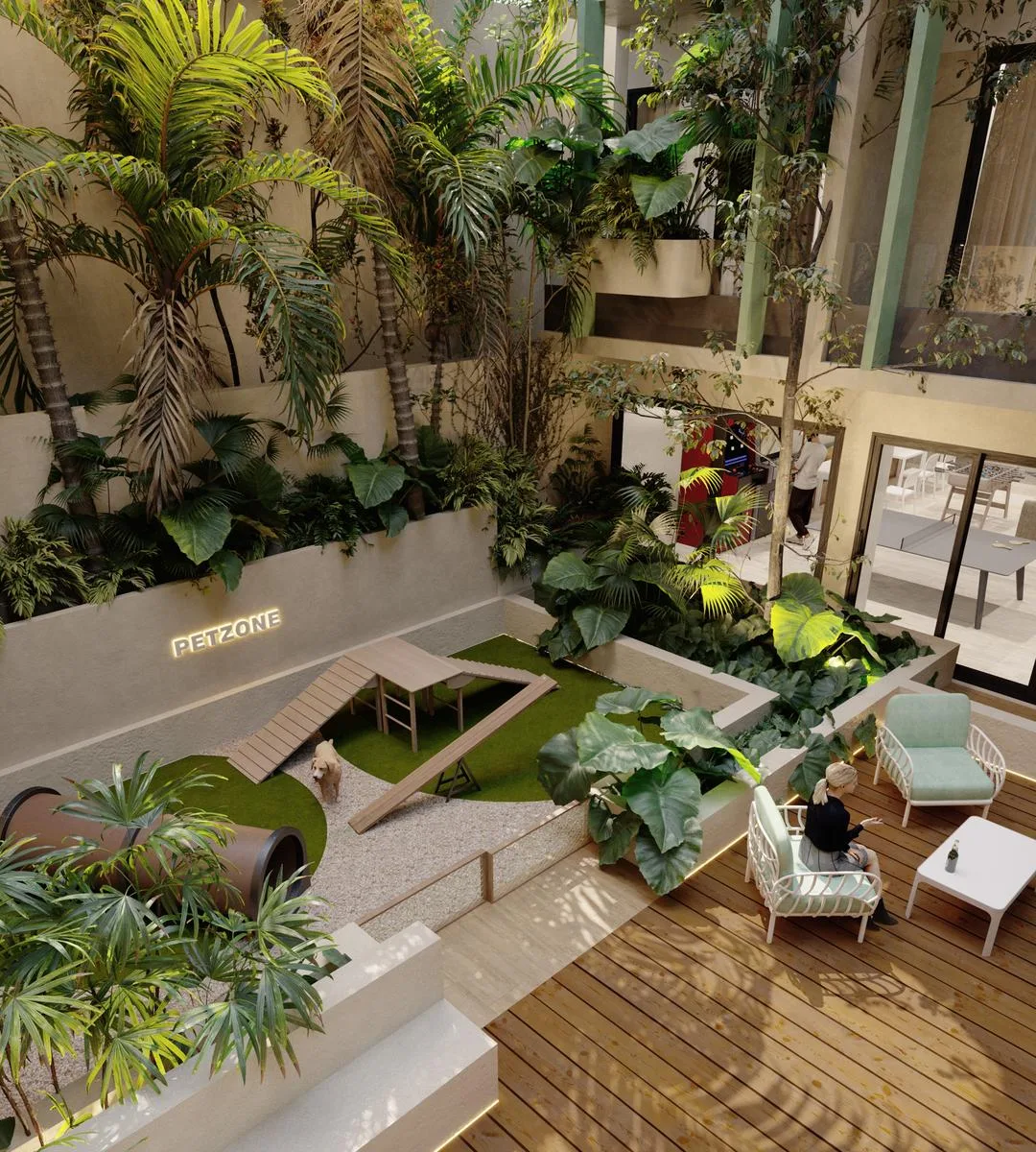 The building offers a comprehensive suite of amenities including a lobby, underground parking, elevators, a gym, swimming pools, a jacuzzi, a sauna, two spa rooms, a grill area, a coworking space, and a pet zone.