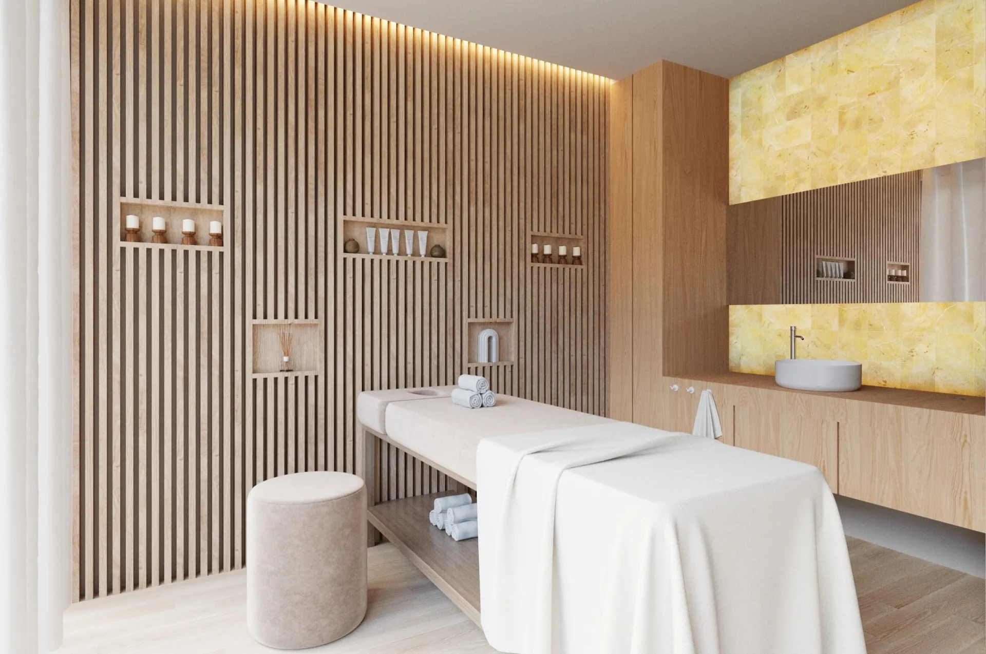 The architectural design blends contemporary elegance with local touches. The property includes 24/7 security and luxury amenities such as a sky bar and a swimming pool.