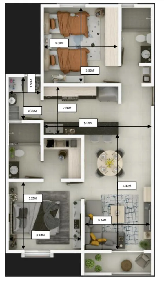 Two-Bedroom Apartment in Playa del Carmen, 10 Minutes from the Beach with Modern Amenities