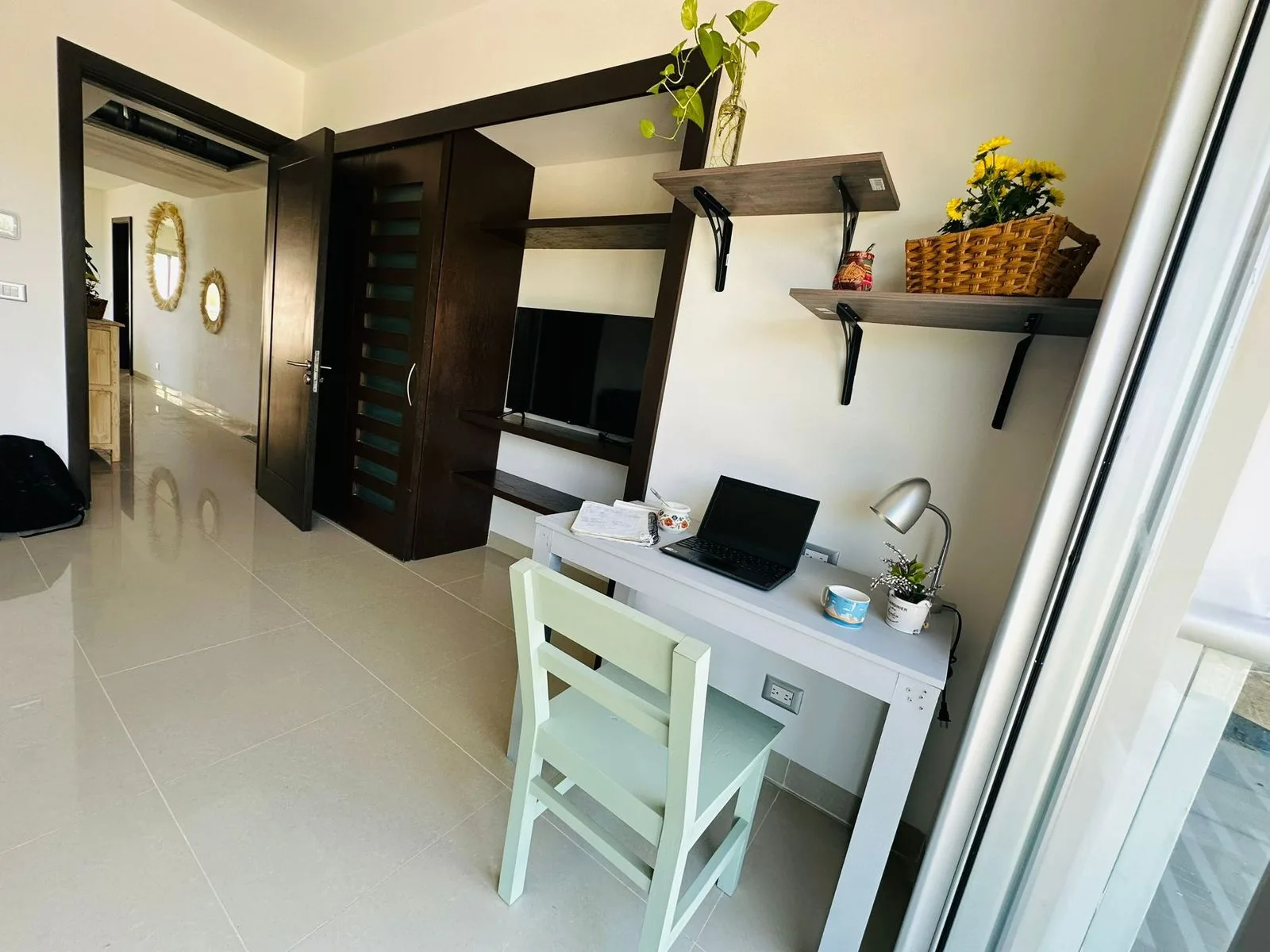 Additional unit features include air conditioning, parking, and a maid's room with a fully equipped bathroom.
