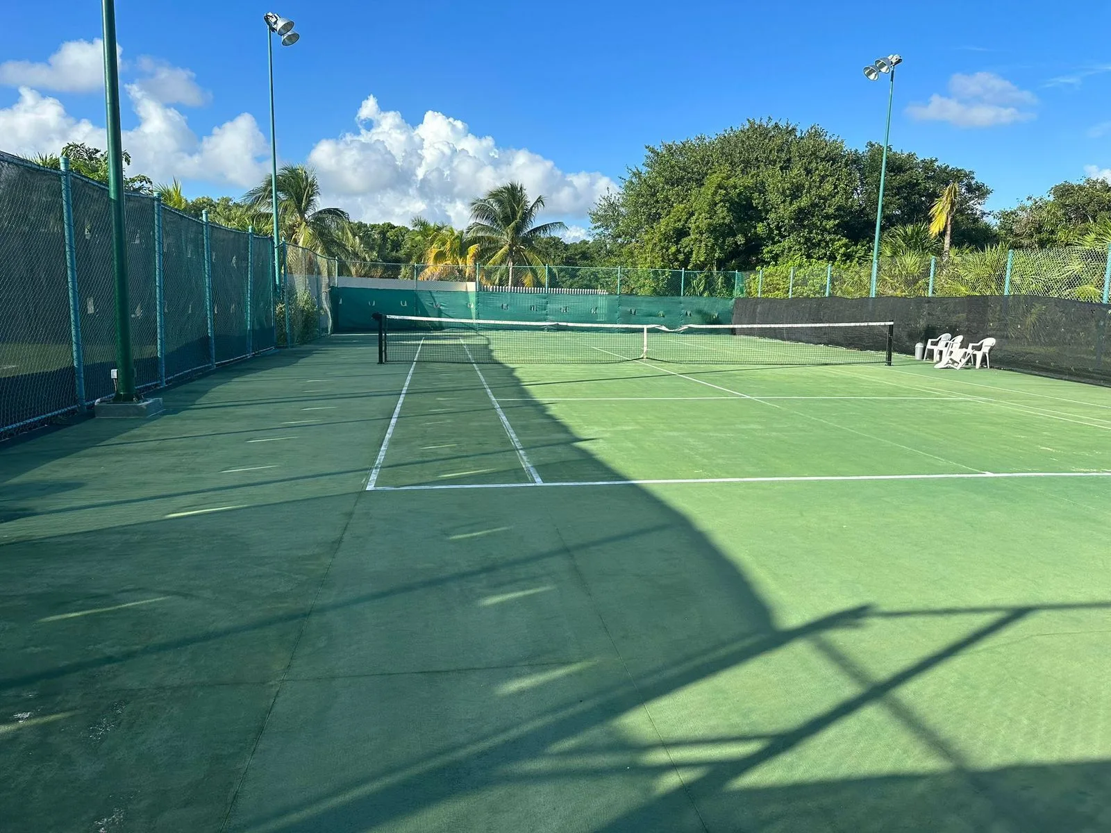 The residential complex offers extensive amenities, including a semi-Olympic swimming pool, a gymnasium, two tennis courts, and a padel court. On-site facilities also include two restaurants and a mini-market.
