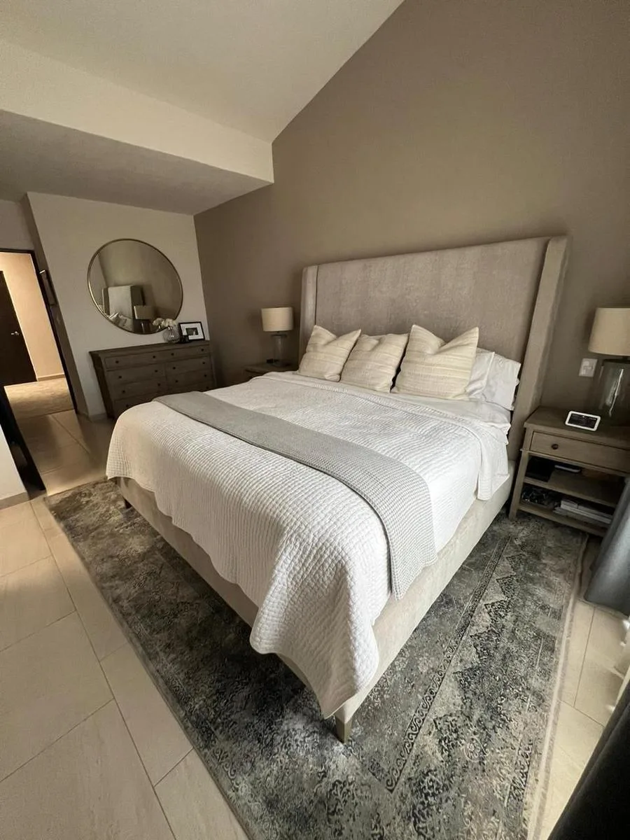 The residence features three bedrooms and 2. 5 bathrooms. The master bedroom includes a walk-in closet. There is a spacious pantry and a covered parking space for two cars, with the capacity to accommodate up to five vehicles.