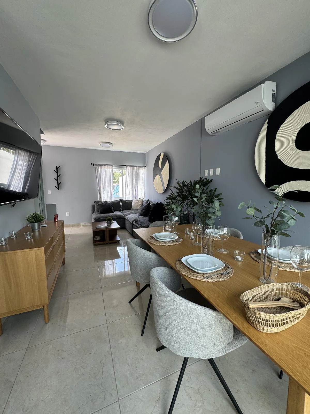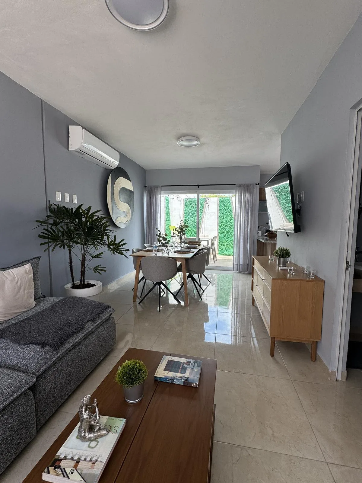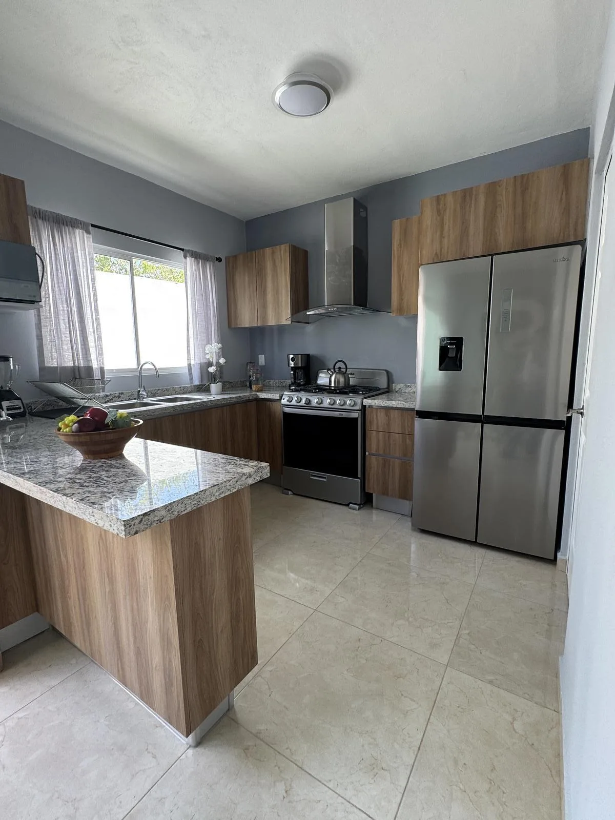This property for sale is a three-bedroom home located in Playa del Carmen. The home includes a functional layout with well-utilized spaces and benefits from excellent natural lighting. It is part of a community featuring a family-friendly environment.