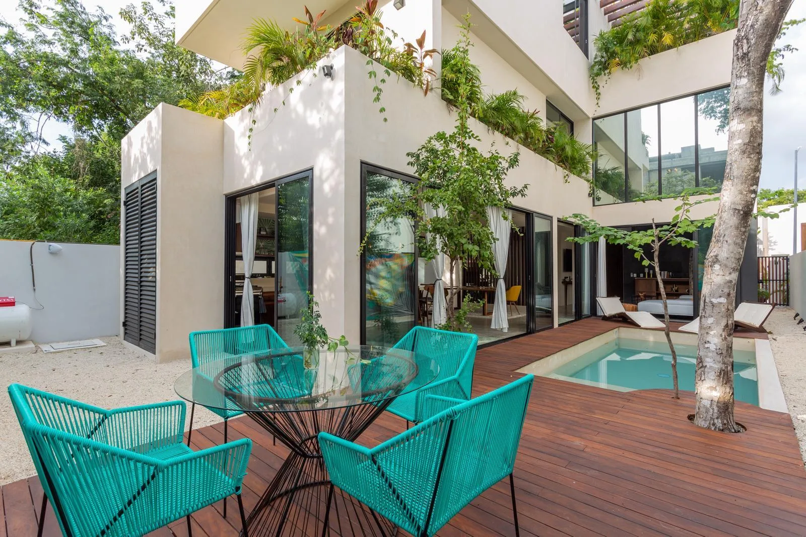 The residence is situated within the exclusive Senderos community in Ciudad Mayakoba. The community features double access control and 24/7 security. The area is known for its tranquility, green spaces, natural trails, and proximity to private cenotes. Nearby amenities include supermarkets, gourmet restaurants, schools, medical services, and shopping centers. Beaches such as Maroma and the MVGNATA Beach Club, as well as theme parks like Xcaret, are a short drive away.