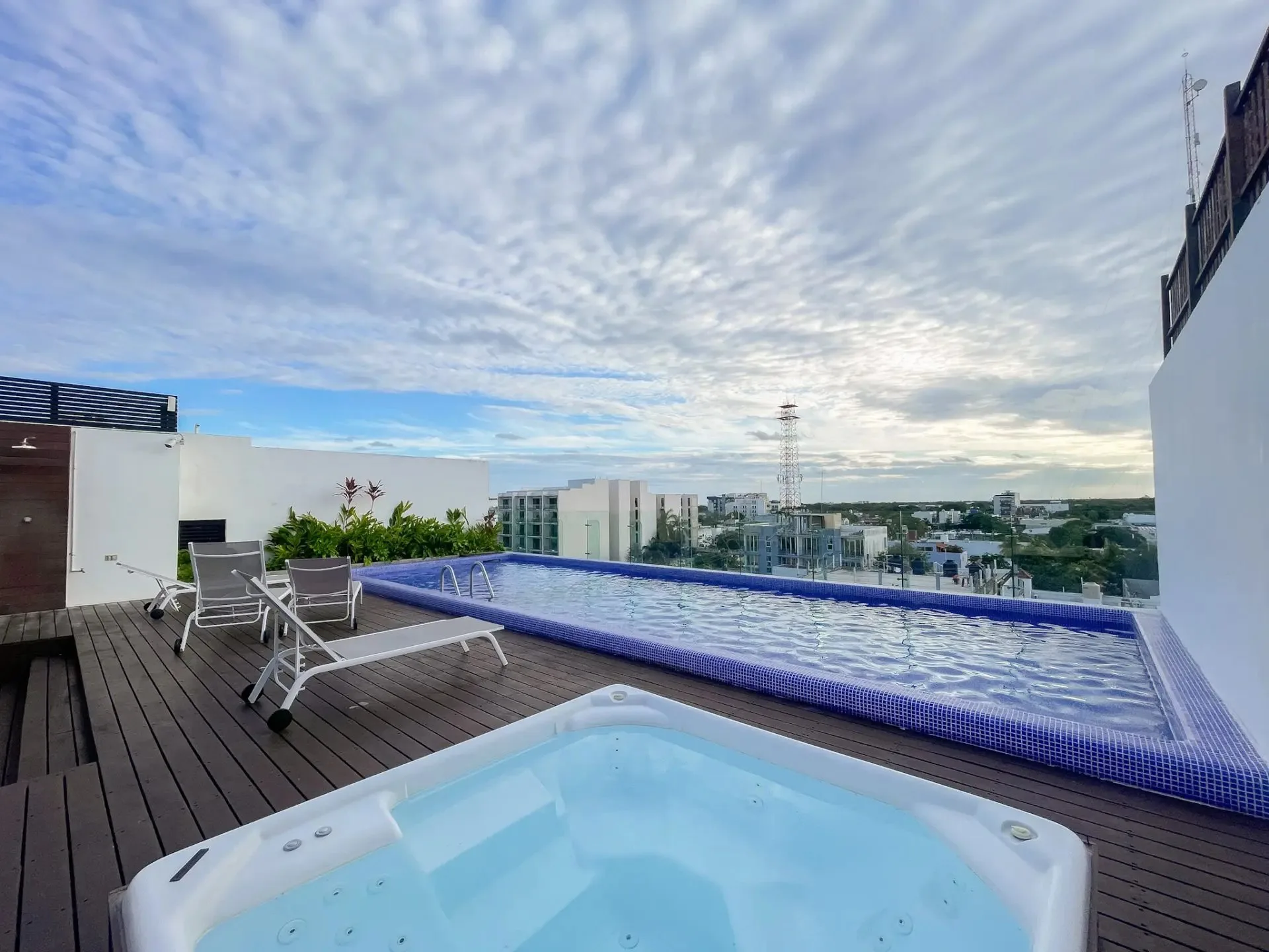 The residence is situated just a 7-minute walk from Playa del Carmen Beach and approximately 1 km from Playacar Beach. The ADO International Bus Station is an 8-minute walk away, and the Maritime Terminal is 1 km from the property. The area provides access to local boutiques, nightlife, and restaurants.