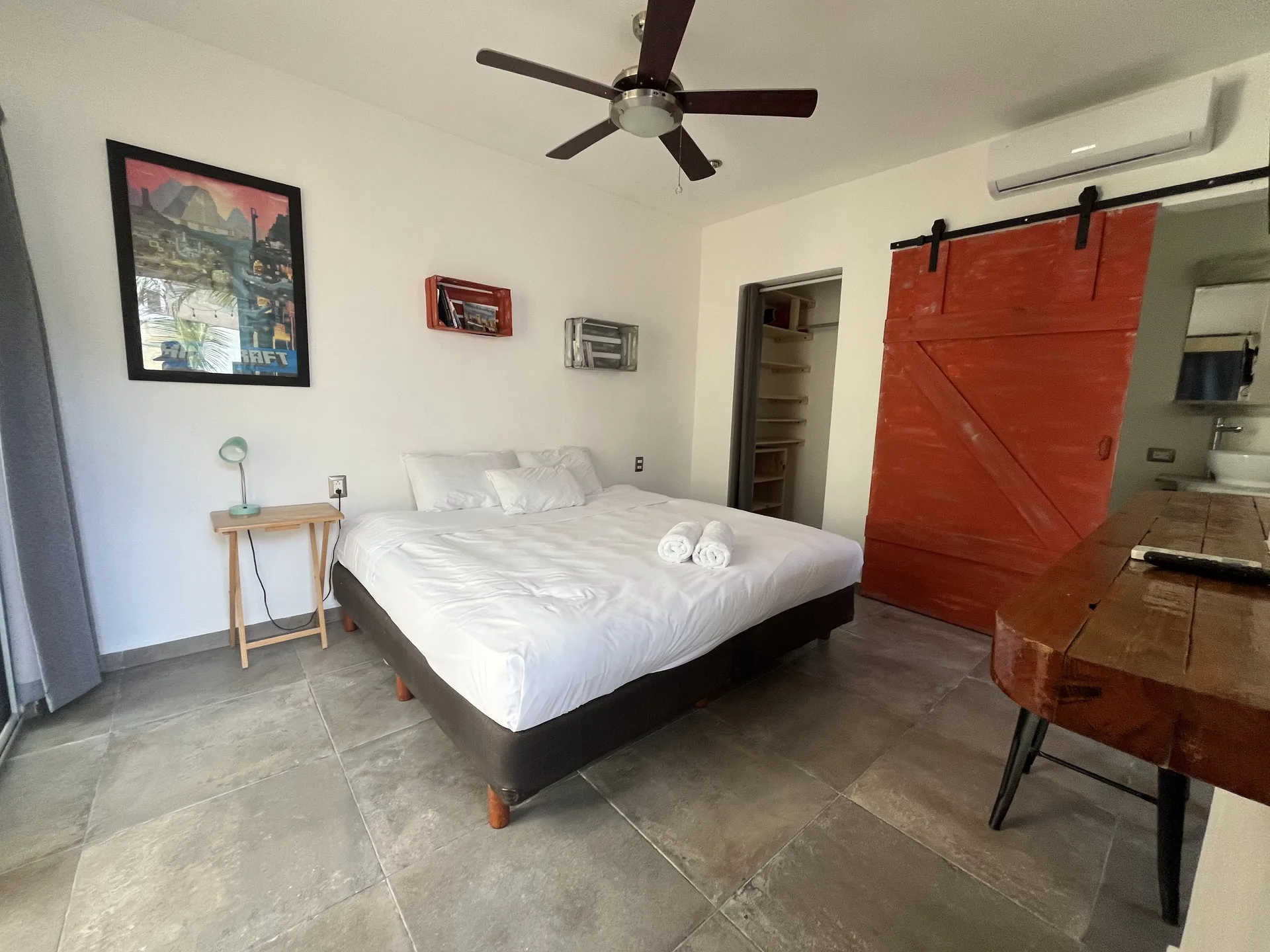 The property boasts a private swimming pool. A separate, self-contained studio with a private entrance is provided for guests. The home also includes two mini storage rooms.