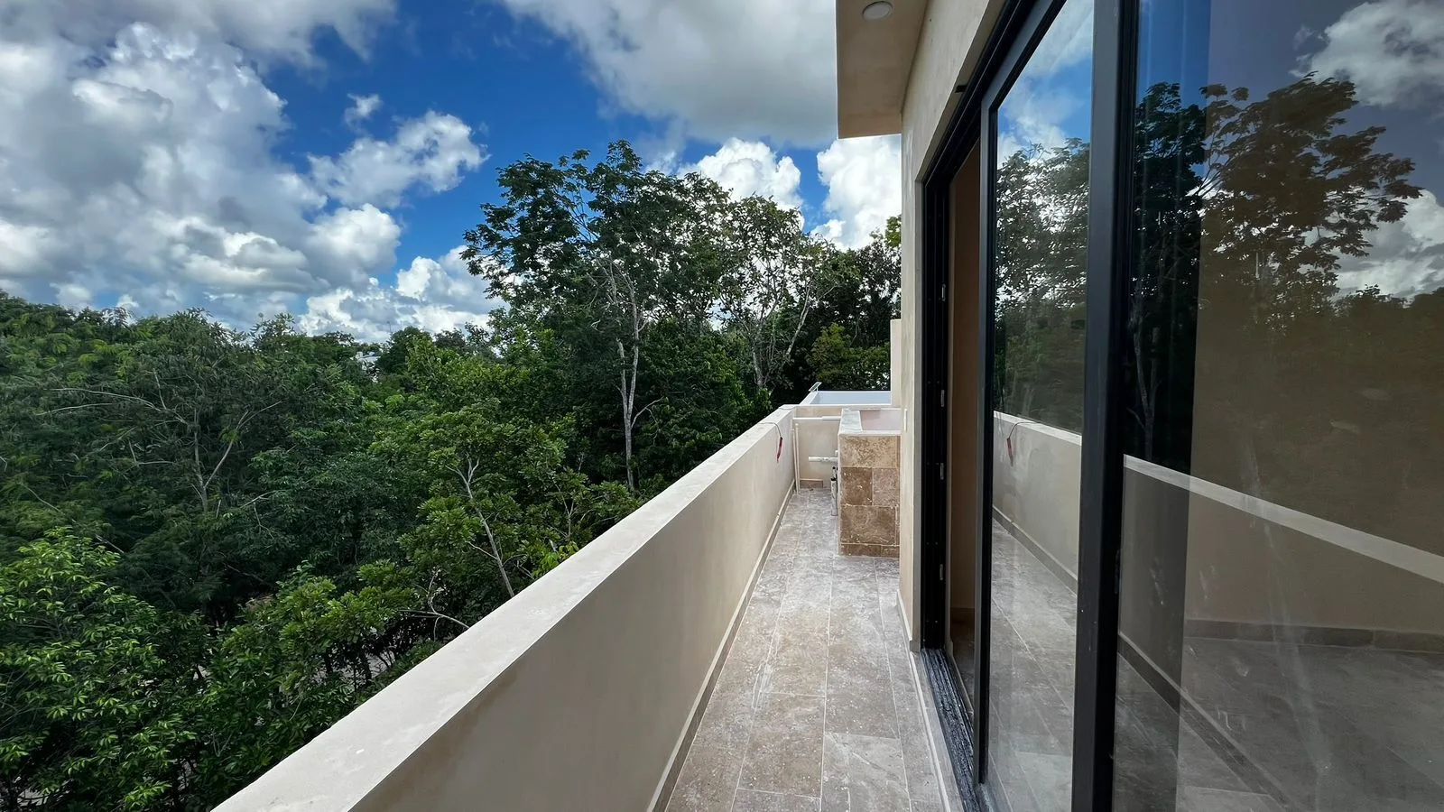 Premium finishes include marble-type porcelain tile, Parota and Tzalam wood, granite kitchen countertops, and marble bathroom vanities. The rooftop is constructed with concrete.