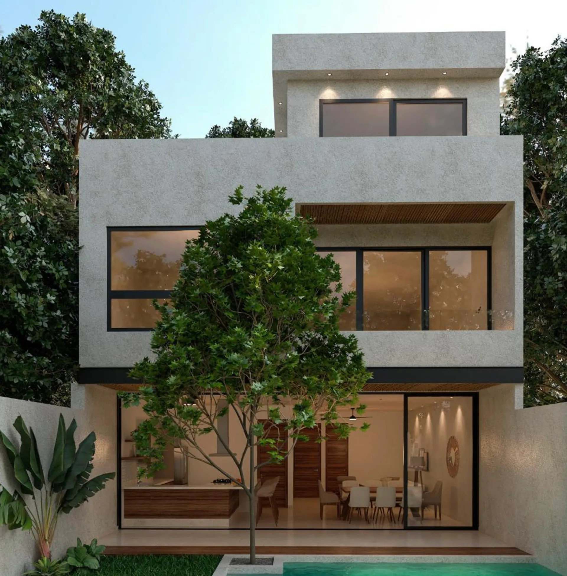 Contemporary 4-Bedroom Home with Private Pool and Rooftop Plunge Pool in Senderos, Ciudad Mayakoba