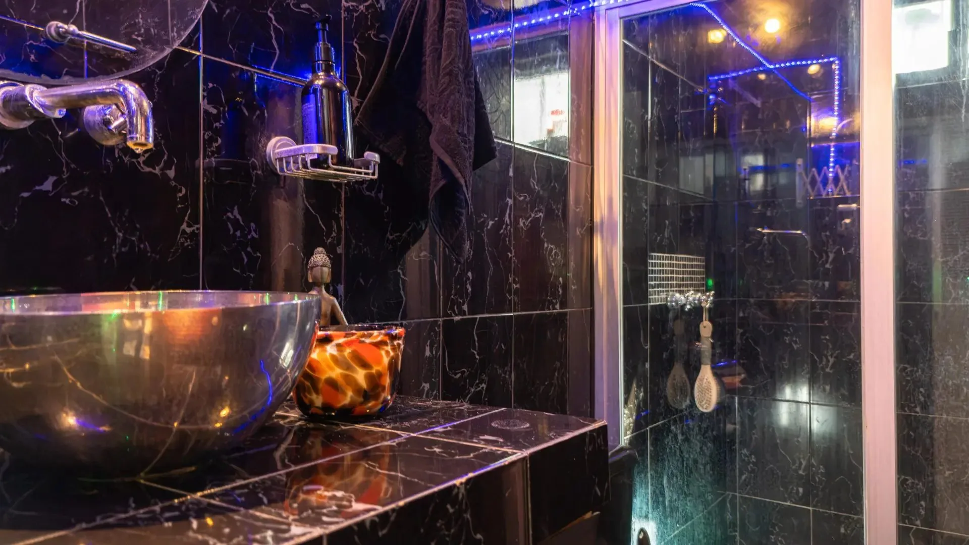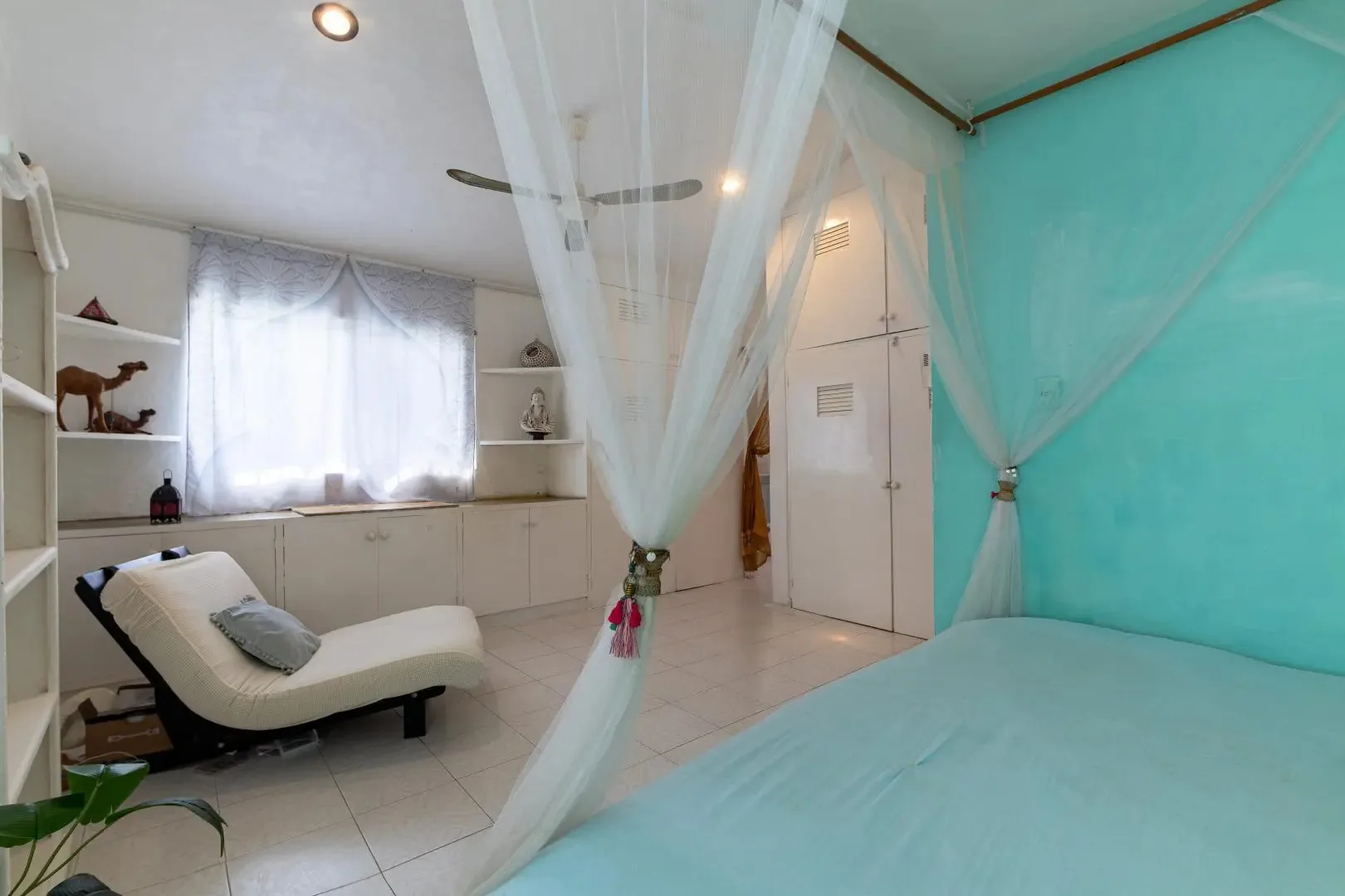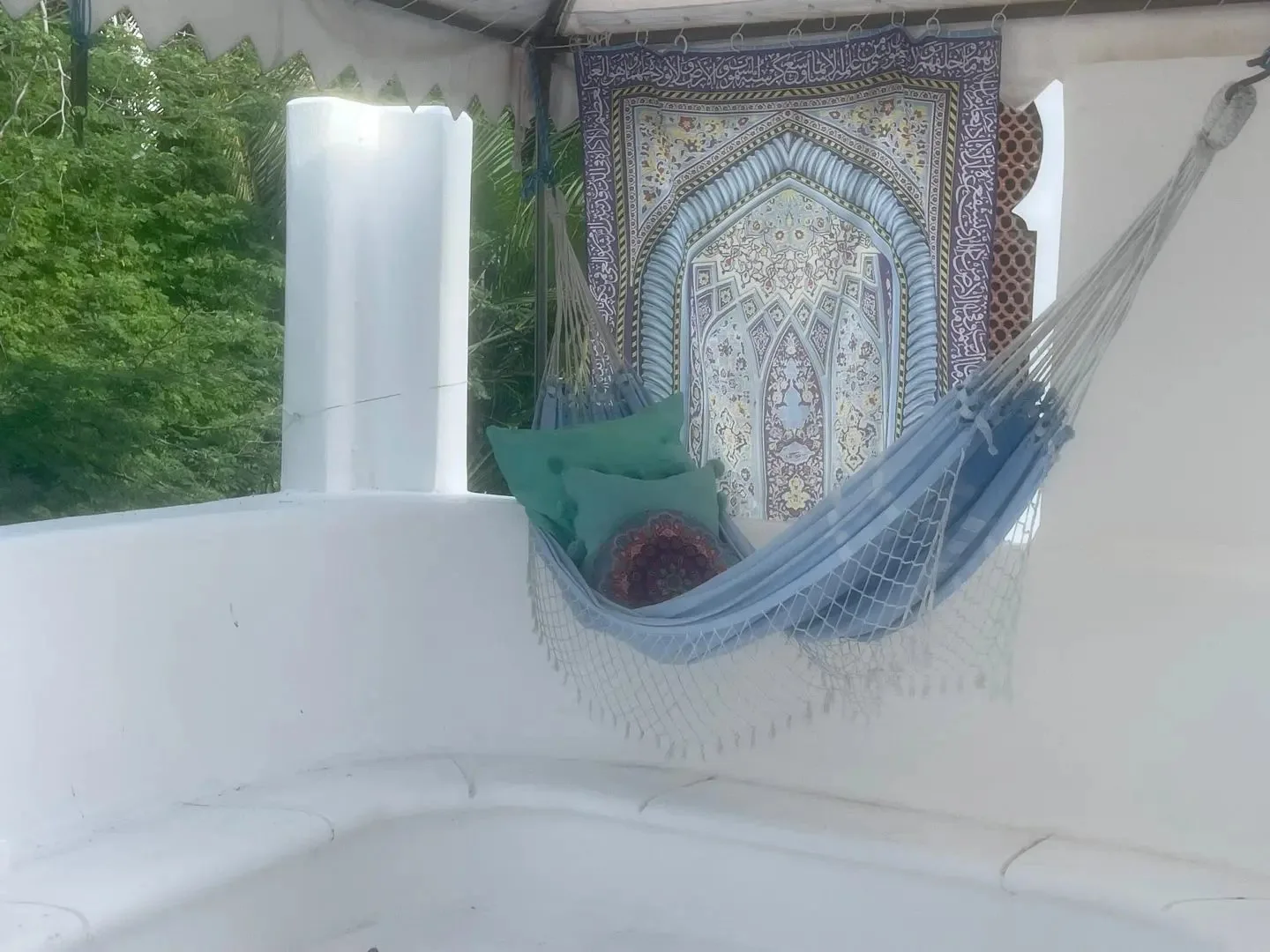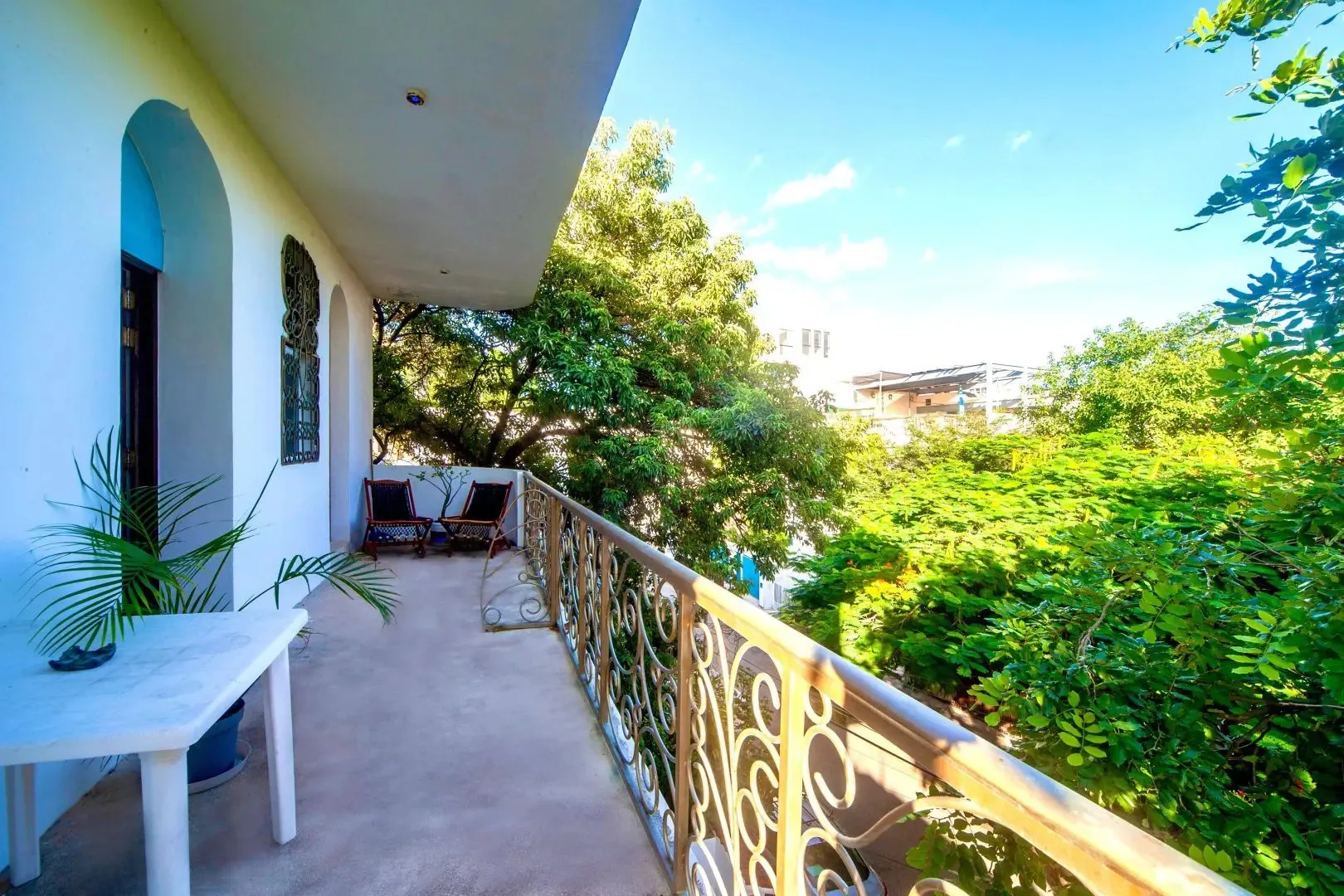 The three-level apartment building contains one residence per floor, each approximately 106 square meters. Each apartment offers two bedrooms, two bathrooms, and complete privacy. The design is Moroccan-inspired, with handcrafted mosaic details and bathtubs finished with imported Italian tile.