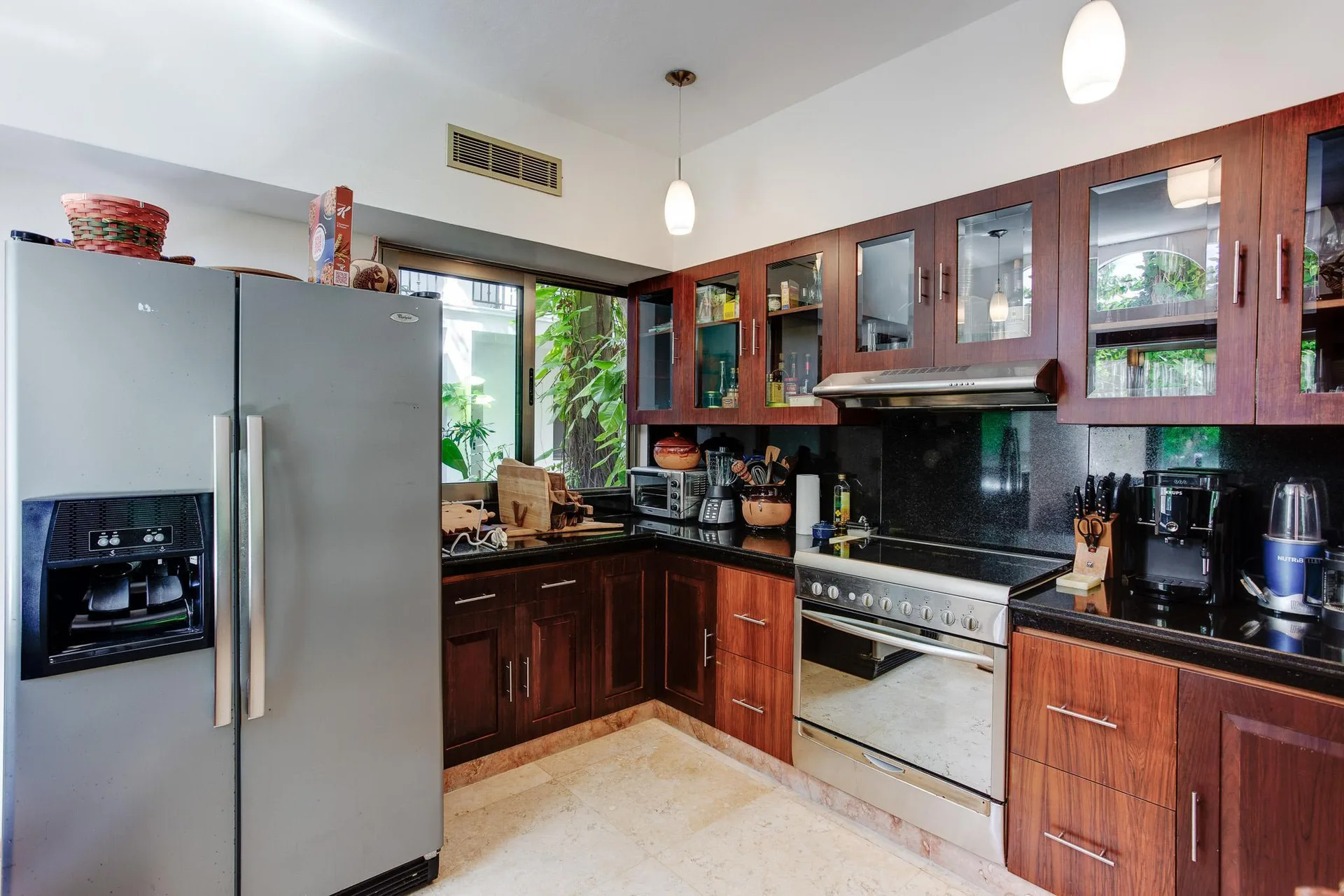 The solid construction features a concrete block structure, hurricane-resistant windows with laminated glass, and high-security locks. The property includes an efficiency system with 12 solar panels, a 12, 000-liter cistern, water softeners, and reverse osmosis filters. Comfort is provided by six mini-split air conditioning units and a central Trane air handler, along with a water heater. Advanced security includes a Honeywell alarm system with sensors and a closed-circuit system of HD security cameras.