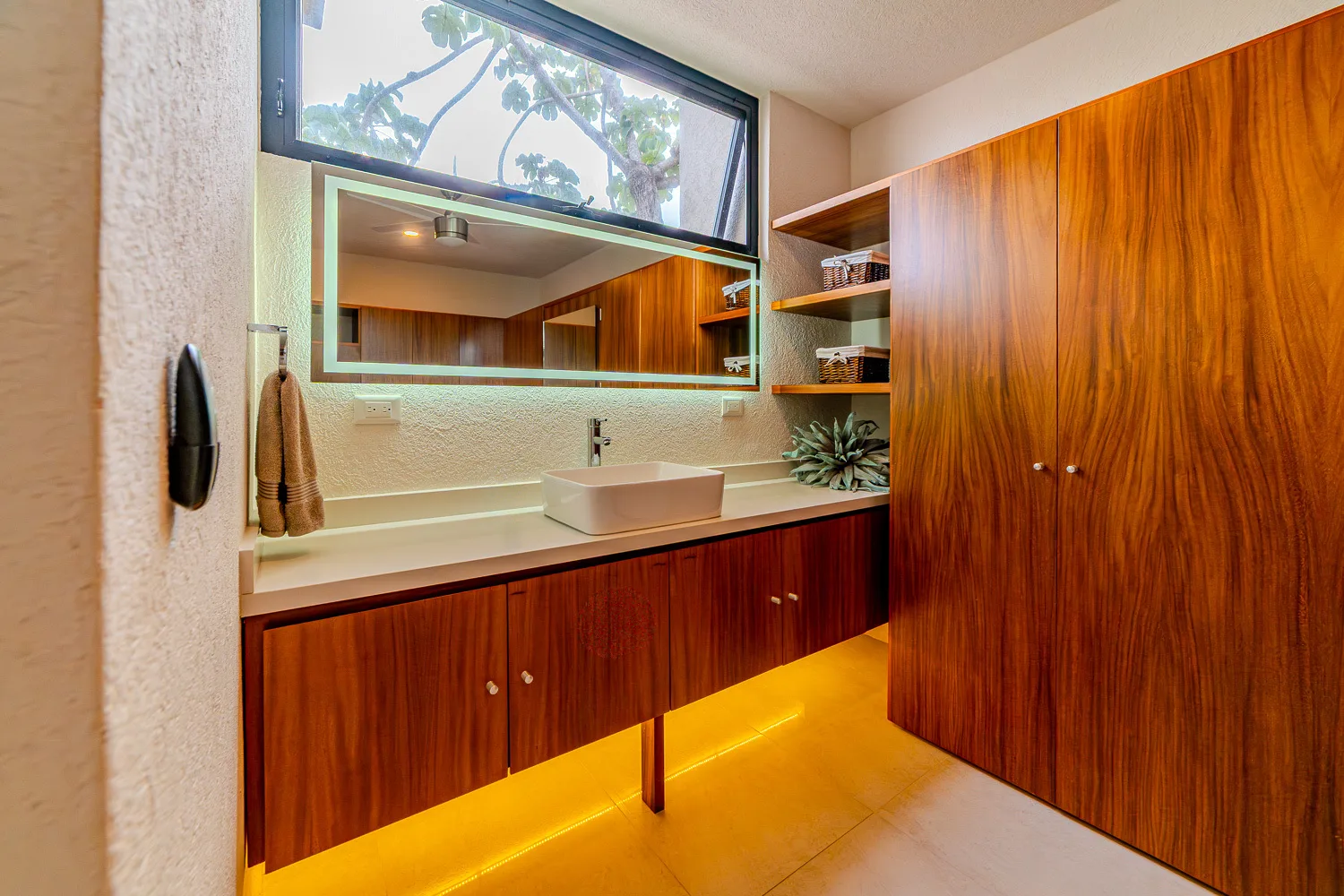 On the second floor are three bedrooms, each with its own wardrobe and private bathroom, along with a laundry room.