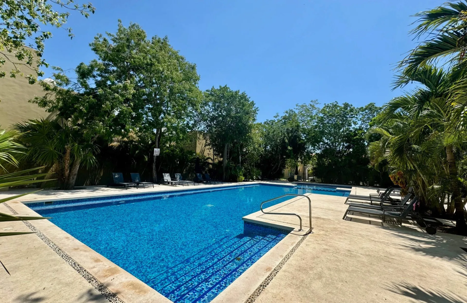 The community offers a range of amenities, including a Clubhouse for social events, an adult and children's swimming pool, a paddle tennis court, soccer and basketball courts, and a natural cenote within the development. It is a gated community with controlled access, a 24/7 security guardhouse, extensive green areas and gardens, a children's play area, and perimeter walls throughout. Utilities are underground, and roads are paved. The community is pet-friendly.