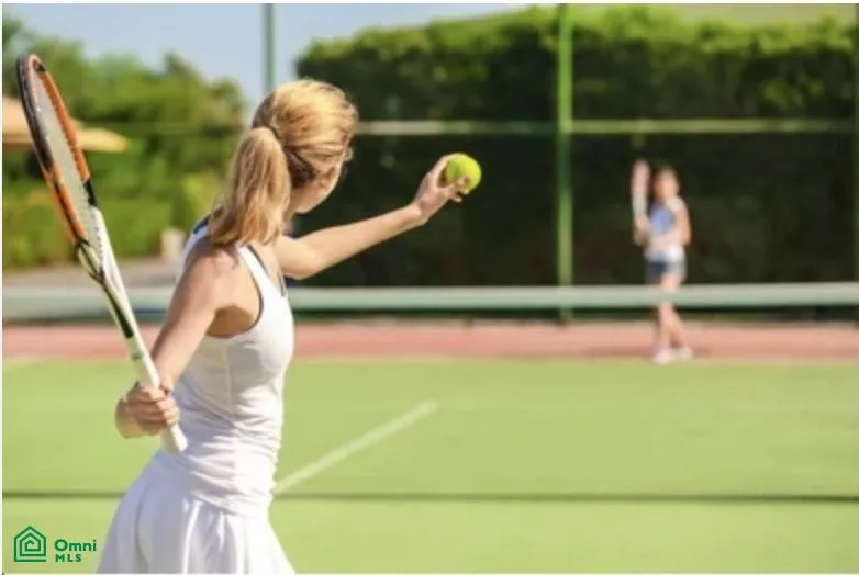 The property provides ample parking and is surrounded by green areas that adorn the grounds.