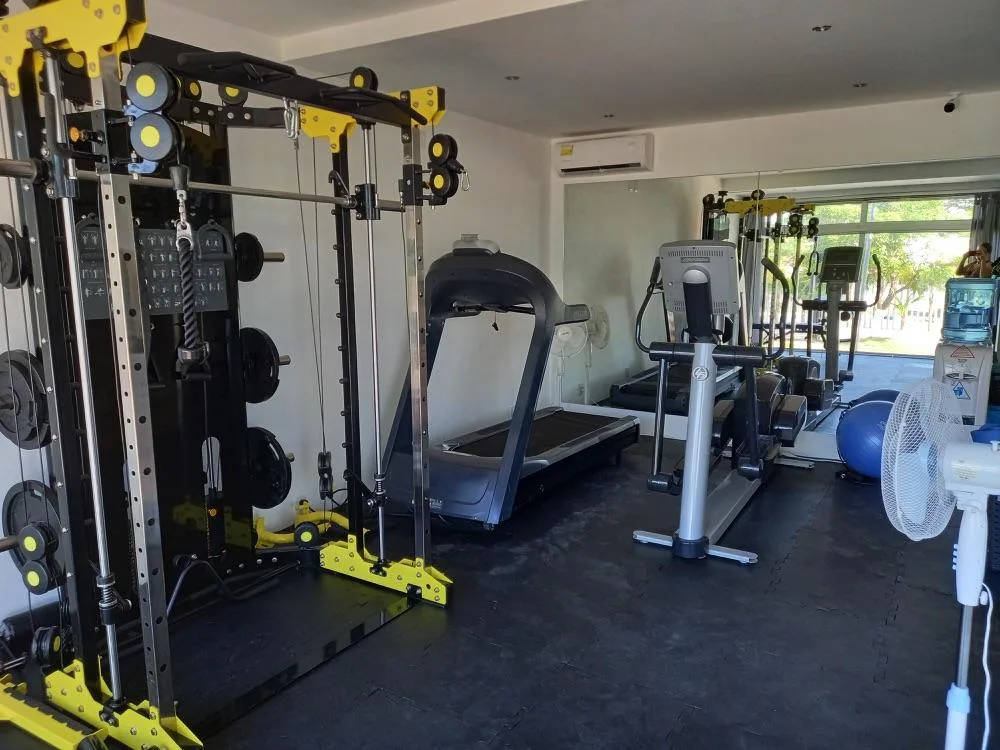 The building includes a larger rooftop pool with ocean views, a gym on the ground floor, an elevator, and secure underground parking. Practical building features consist of insulated windows and exterior walls, a reverse osmosis water treatment system, and controlled access with 24/7 security.