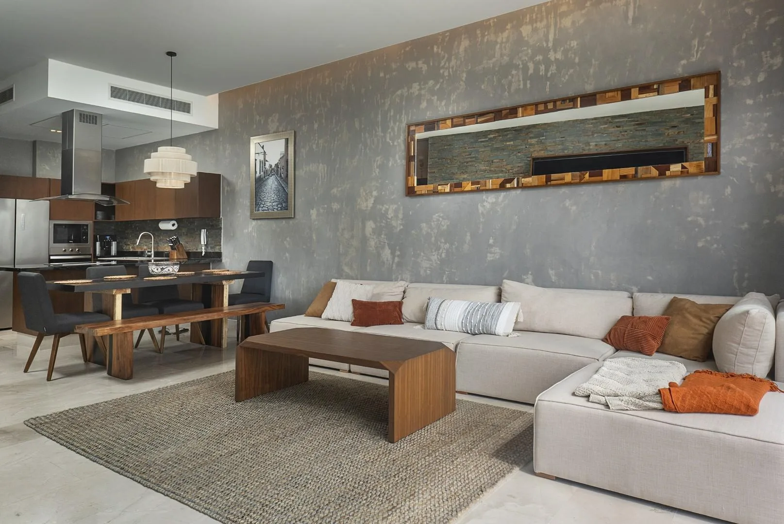 The property is located just steps from the beach and Playa del Carmen's vibrant 5th Avenue. It is fully furnished, with all major furniture and custom interior elements included.